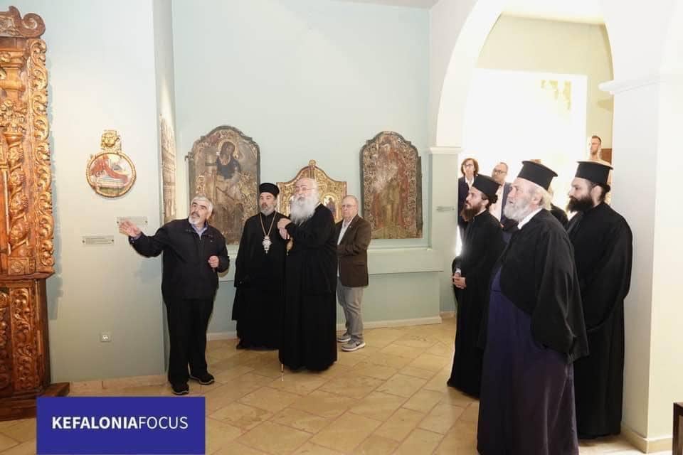 Χθες το πρωί,ο Μακαριοτάτος Αρχιεπίσκοπος Ιουστιανής και πάσης Κύπρου κ.κ.Γεώργιος στα πλαίσια της επίσκεψης του στην Κεφαλονιά επισκέφτηκε το Εκκλησιαστικό και Βυζαντινό Μουσείο Κεφαλονιάς στην Ιερά Μονή του Απόστολου Αγίου Ανδρέα Μηλαπιδιάς,και ξεναγήθηκε στο χώρο,απο τον διευθυντή κ.Κωνσταντίνο Στάβερη που είναι η ψυχή του Μουσείου και ο άνθρωπος και που αφιέρωσε όλη του την ζωή στην δημιουργία του,δηλώνοντας εντυπωσιασμένος από την ενημέρωση που είχε από τον κ..Στάβερη τόσο για τη δημιουργία και την εξέλιξή,όσο και από τα εκθέματα του Μουσείου.