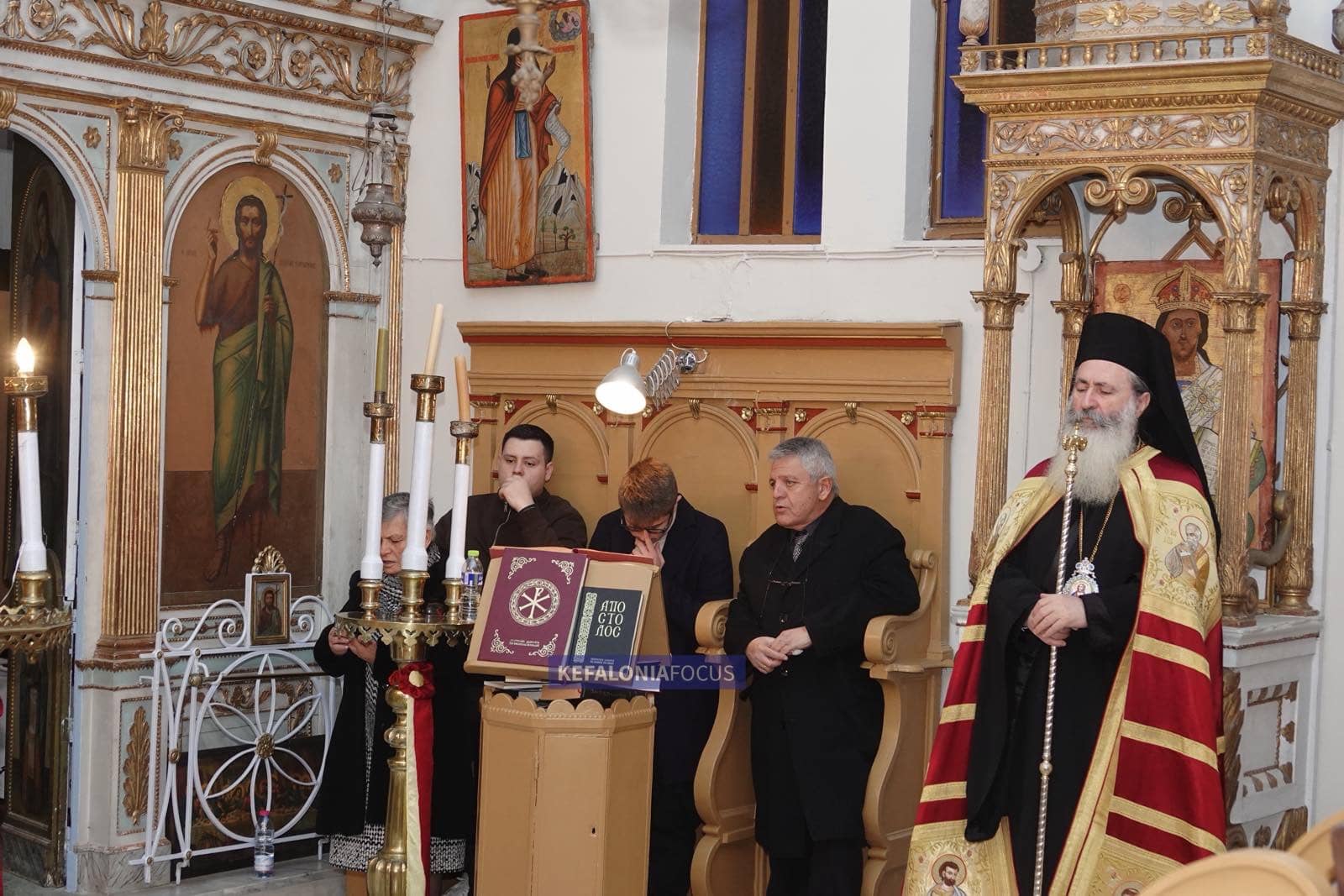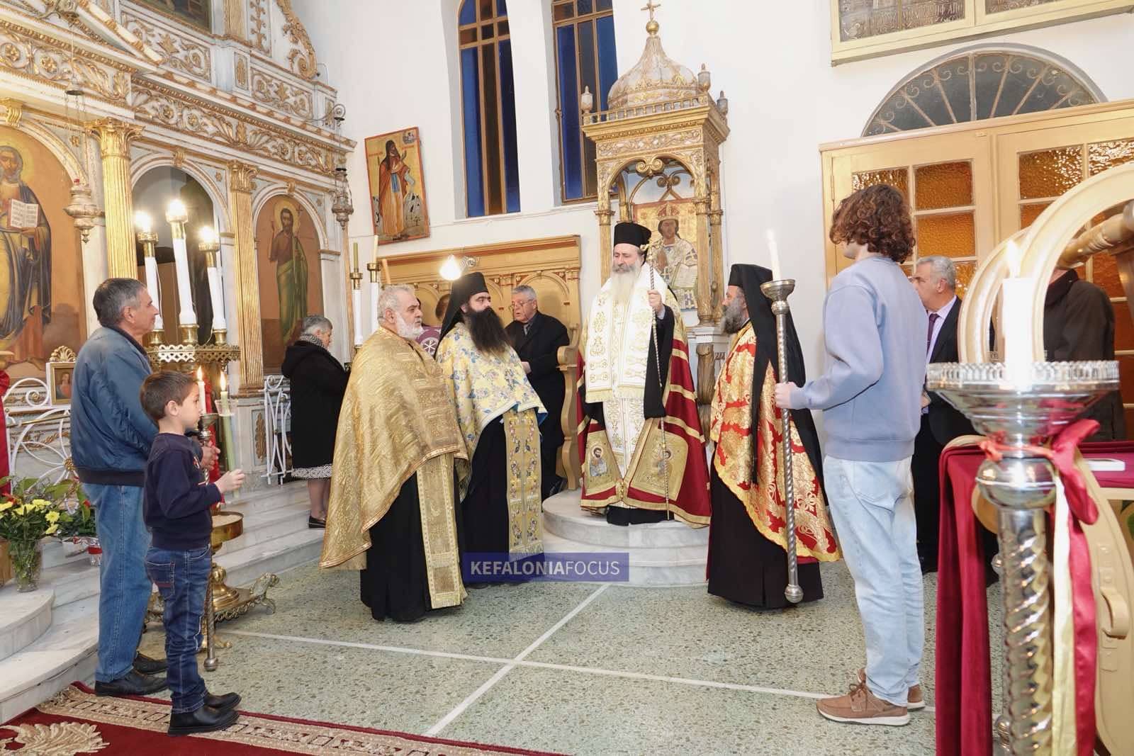 Στον Πανηγυρικό Εσπερινό χοροστάτησε ο Σεβασμιώτατος Μητροπολίτης Κεφαλληνίας κ.κ. Δημήτριος, συλλειτουργούντων του εφημερίου του Ναού, π. Ξενοφώντα Ζαρκάδα, και ευσεβών κληρικών της Ιεράς Μητροπόλεως.