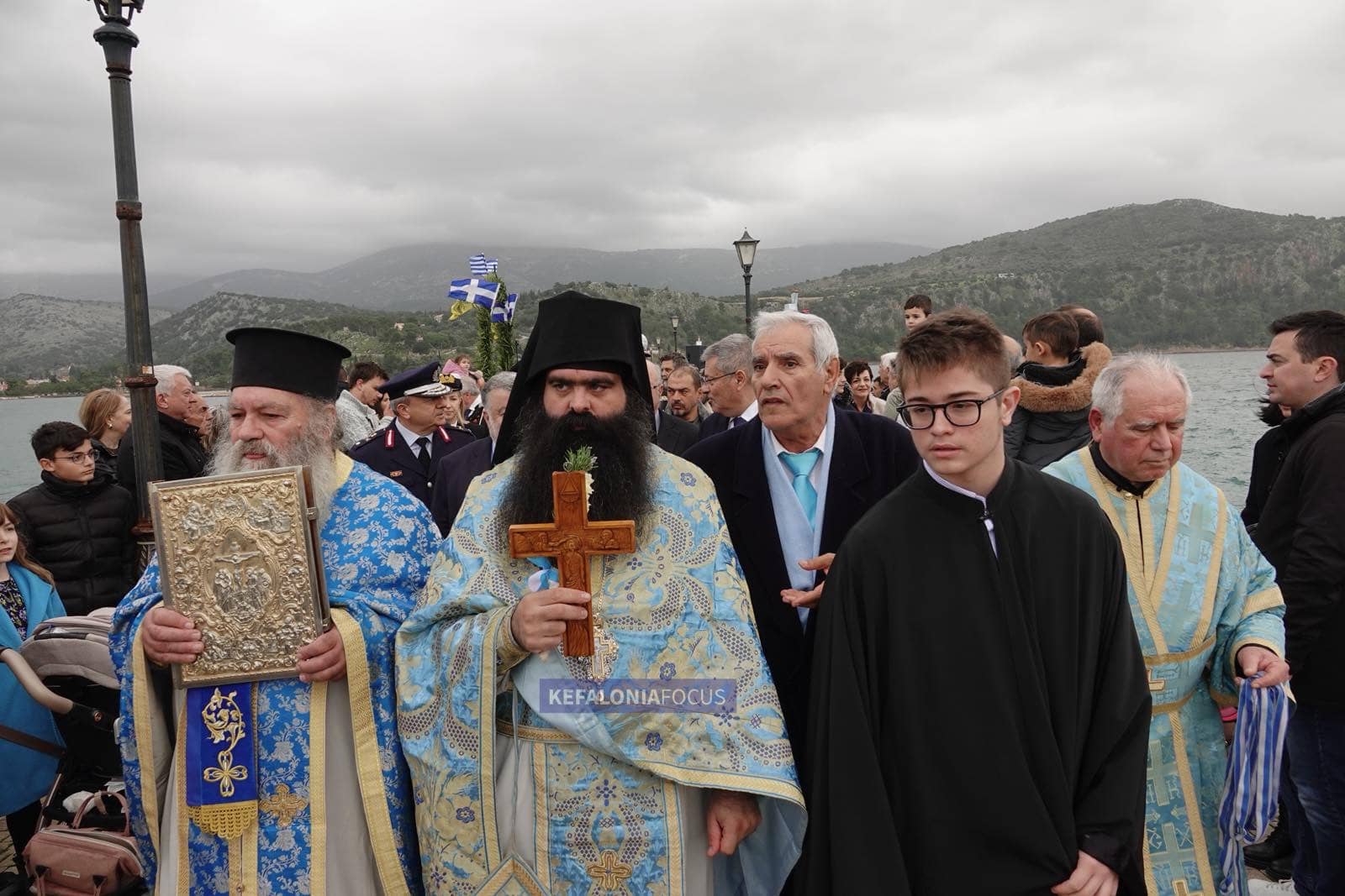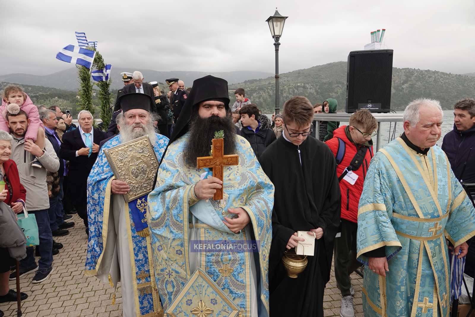 Τον Μεγάλο Αγιασμό των Υδάτων τέλεσε ο Αρχιερατικός Επίτροπος της Ιεράς Μητροπόλεως Κεφαλληνίας,Αρχιμανδρίτης π.Γεράσιμος Χαραλαμπάτος ,σε κλίμα βαθιάς ευλάβειας και πνευματικής συγκίνησης. Μετά την ακολουθία, ακολούθησε η λιτάνευση προς το σημείο της κατάδυσης του Τιμίου Σταυρού, με την πομπή να διασχίζει την προκυμαία μέσα σε ατμόσφαιρα σεβασμού και εορταστικής μεγαλοπρέπειας.