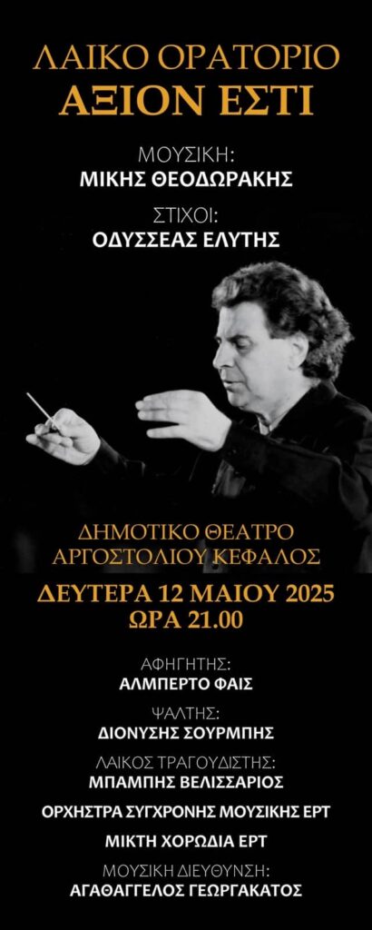 Συντελεστές της Μικτή Χορωδία ΕΡΤ, Ορχήστρα σύγχρονης μουσικής ΕΡΤ, Διονύσης Σούρμπηςβαρύτονος, Αλμπέρτο Φάις αφηγητής, Μπάμπης Βελλισάριος λαϊκός τραγουδιστής, σε μουσική διεύθυνση του Διευθυντή της Χορωδίας Εθνικής Λυρικής Σκηνής Αγαθάγγελου Γεωργακάτου.