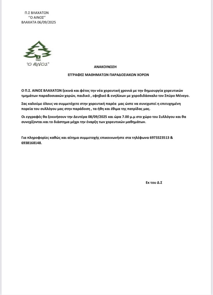 Π.Σ ΑΙΝΟΣ ΒΛΑΧΑΤΩΝ:Έναρξη μαθημάτων παραδοσιακών χορών ΠΟΛΙΤΙΣΜΟΣ Newsroom 06/09/2025 ΓΡΑΦΕΙ Ο ΜΑΚΗΣ ΛΕΚΑΤΣΑΣ 06/09/2025 06/09/2025 06/09/2025 Share FacebookTwitterPinterestWhatsApp ΠΑΡΟΜΟΙΑ ΑΡΘΡΑ Previous articleΠεριπέτεια Αγγλίδας τουρίστριας στην παραλία «Κανάλι» – Επέμβαση Πυροσβεστικής και ΕΚΑΒNext articleΜαύρα και καφέ λιμνάζοντα ύδατα στην περιοχή του ΚΤΕΛ και των Λυκιαρδοπουλάτων στα – Ερωτήματα για την προέλευσή τους ΣΧΟΛΙΑ ΧΡΗΣΤΩΝ LEAVE A REPLY Cancel reply Comment: Please enter your comment! Name:* Please enter your name here Email:* You have entered an incorrect email address! Please enter your email address here Website: Save my name, email, and website in this browser for the next time I comment. ΤΕΛΕΥΤΑΙΑ ΝΕΑ Αεροδιακομιδή ζωής: Γυναίκα με σοβαρό καρδιολογικό πρόβλημα μεταφέρθηκε από την Κεφαλονιά... 18/01/2026 «Dream Team» Λυκούδη: Οι επιλογές που σηματοδοτούν το τουριστικό μέλλον της... 18/01/2026 Ο Πολιτιστικός Σύλλογος «Η Αγία Πελαγία» Σβορωνάτων έκοψε τη βασιλόπιτα –... 18/01/2026 Στο σπίτι του Σίμου στο Ρούδι: Αφηγήσεις ζωής και εξερεύνησης στα... 18/01/2026 Γιώργος Λασκαράτος για τον Γιώργο Στρατιώτη: Το Αγκυροβόλιο Αγίας Πελαγίας ως... 18/01/2026