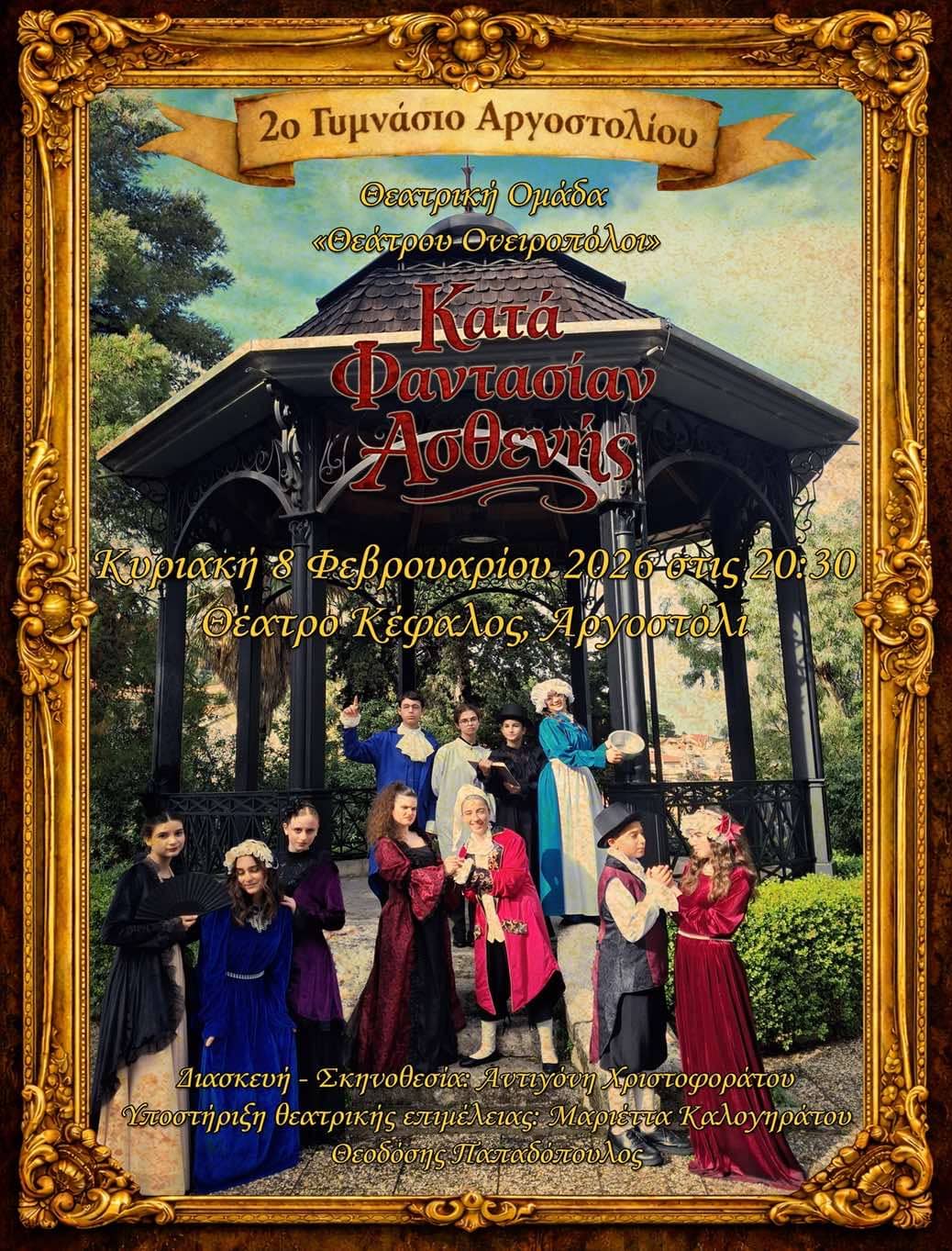 Η παράσταση παρουσιάζεται στο πλαίσιο πολιτιστικού προγράμματος που υλοποιεί το 2ο Γυμνάσιο Αργοστολίου και αποτελεί αποτέλεσμα συνεργασίας μαθητών/τριών καιεκπαιδευτικών.