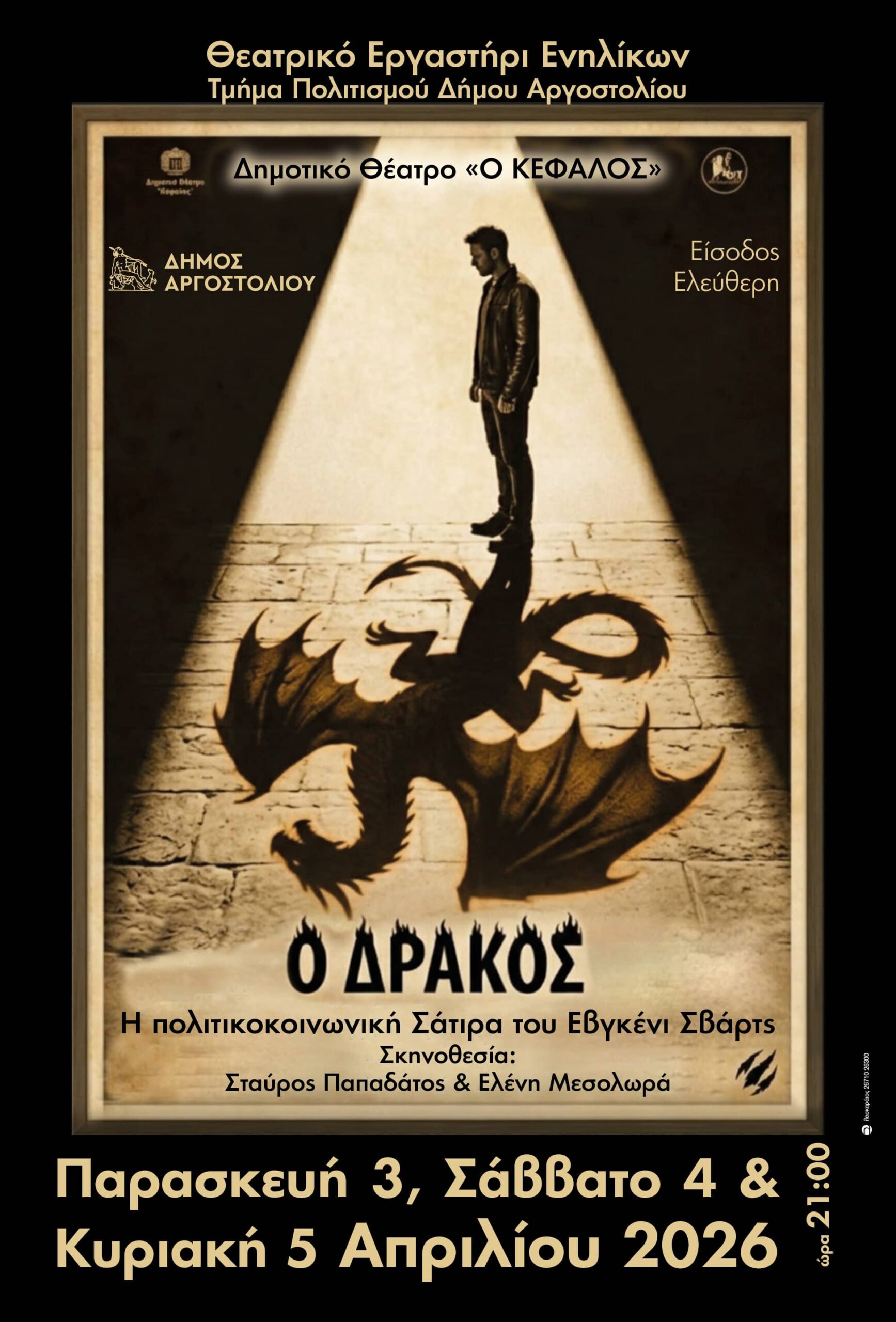 Πρόσκληση για την παράσταση ”Ο Δράκος” απο το Θεατρικό Εργαστήρι Ενηλίκων Δήμου Αργοστολίου ΠΟΛΙΤΙΣΜΟΣ Newsroom 02/04/2026 ΓΡΑΦΕΙ Ο ΜΑΚΗΣ ΛΕΚΑΤΣΑΣ 02/04/2026 02/04/2026 02/04/2026 Share FacebookXPinterestWhatsApp ΠΑΡΟΜΟΙΑ ΑΡΘΡΑ Previous articleΌταν η Μουσική γίνεται θεραπεία: Μια βιωματική συνάντηση στη Σ.Α.Ε.Κ. Γ.Ν. ΚεφαλληνίαςNext articleΔήμος Ιθάκης : Ως τις 15 Ιουνίου η περίοδος καθαρισμού οικοπέδων και ακάλυπτων χώρων για την προστασία από τις πυρκαγιές ΣΧΟΛΙΑ ΧΡΗΣΤΩΝ ΤΕΛΕΥΤΑΙΑ ΝΕΑ Πλημμυρισμένος ο περιφερειακός του Αεροδρομίου: Ποιος έχει την ευθύνη για αυτή... 02/04/2026 Εκδήλωση ευαισθητοποίησης για τον αυτισμό και το παιδικό βιβλίο στην Ιακωβάτειο... 02/04/2026 Η αναβίωση του εθίμου «Τα κάλαντα του Λαζάρου» στο Λιθόστρωτο Αργοστολίου 02/04/2026 Δήμος Ιθάκης : Ως τις 15 Ιουνίου η περίοδος καθαρισμού οικοπέδων... 02/04/2026 Όταν η Μουσική γίνεται θεραπεία: Μια βιωματική συνάντηση στη Σ.Α.Ε.Κ. Γ.Ν.... 02/04/2026