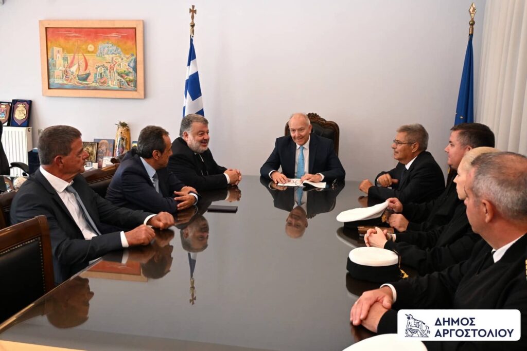Την Δευτέρα 20 Οκτωβρίου 2025, ο Δήμαρχος Αργοστολίου και Πρόεδρος του Λιμενικού Ταμείου Κεφαλονιάς και Ιθάκης, κ. Θεόφιλος Μιχαλάτος, μαζί με τους Αντιδημάρχους κ.κ. Σπύρο Σαμούρη και Διονύση Κωνσταντάτο, υποδέχθηκαν στο Δημαρχείο, τον Υφυπουργό Ναυτιλίας και Νησιωτικής Πολιτικής, κ. Στέφανο Γκίκα.