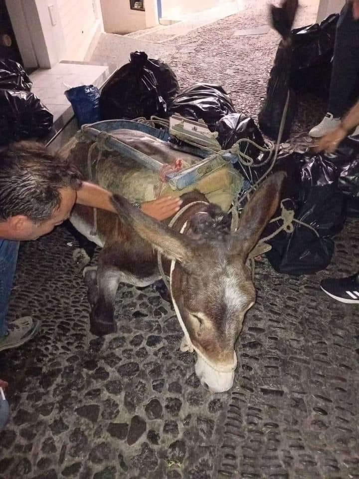 Τα βασανισμένα γαϊδουράκια και μουλάρια του νησιού συνεχίζουν να καταρρέουν από την κούραση και το βάρος των φορτίων που κουβαλούν, ενώ τις περισσότερες φορές εργάζονται για πολλές ώρες, κάτω από τον καυτό ήλιο.
