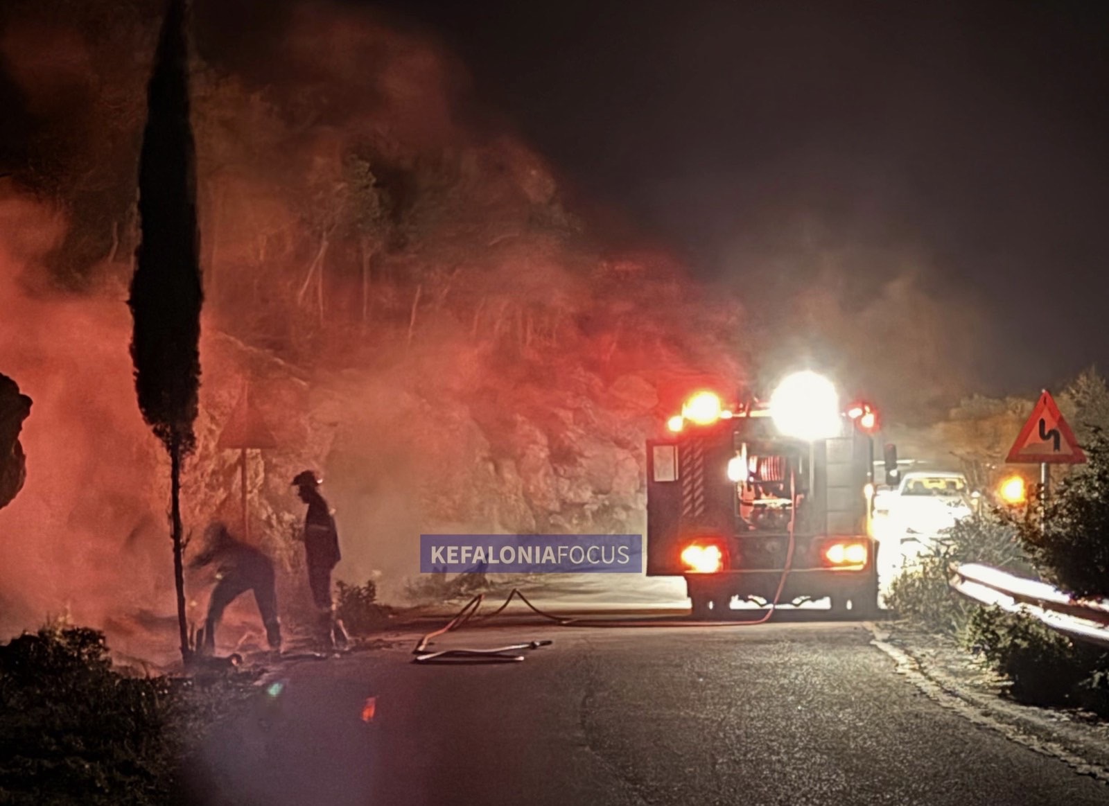 Φωτιά ξέσπασε απόψε, γύρω στις 10 το βράδυ, στην επαρχιακή οδό Σταυρός–Ανωγή, προκαλώντας άμεση κινητοποίηση των αρχών. Το περιστατικό έγινε γρήγορα αντιληπτό, με αποτέλεσμα να σημάνει συναγερμός στο Πυροσβεστικό Κλιμάκιο Ιθάκης, το οποίο ανταποκρίθηκε άμεσα με οχήματα και προσωπικό.
