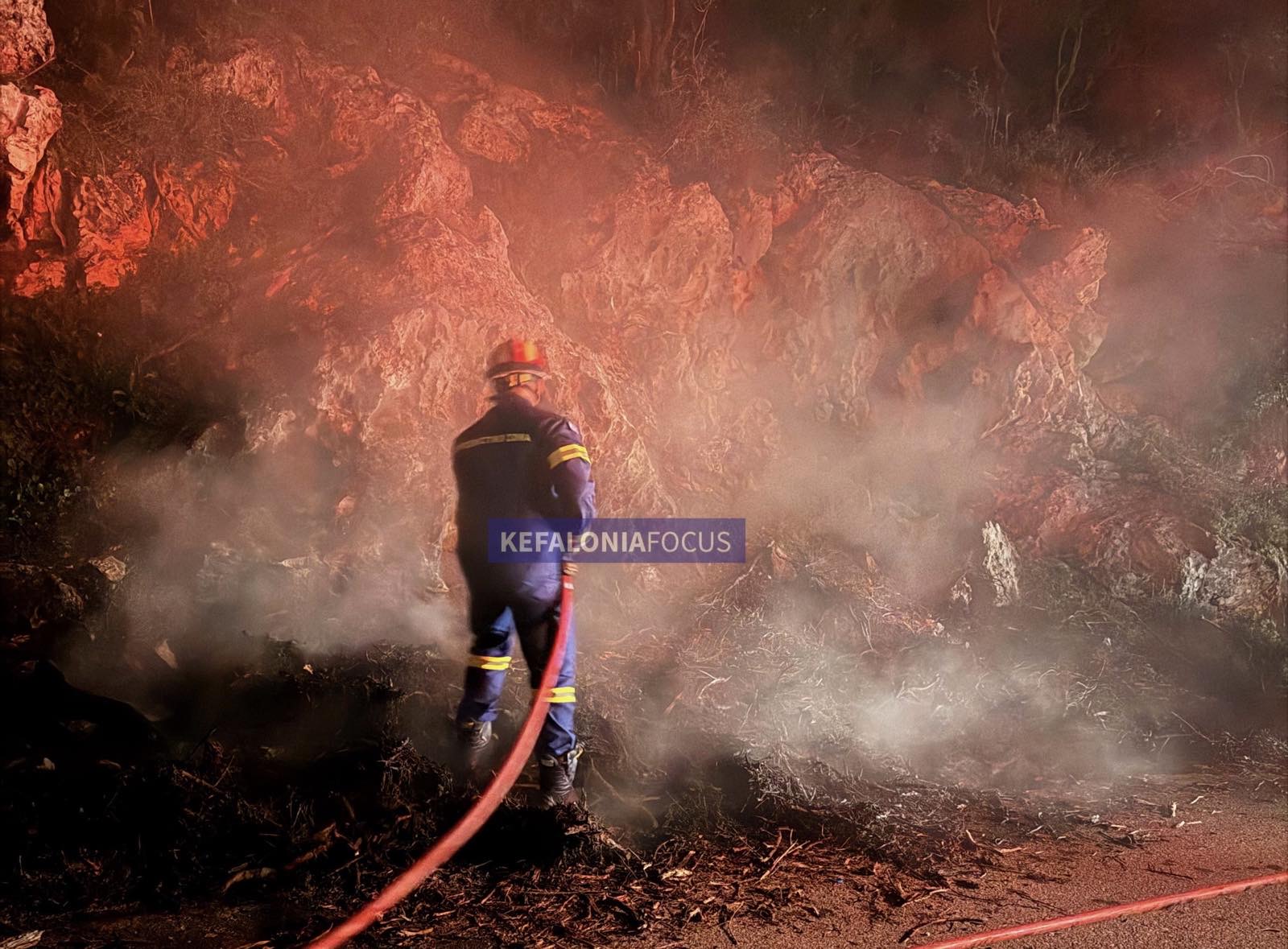 Φωτιά στην επαρχιακή οδό Σταυρός–Ανωγή: Άμεση επέμβαση και πλήρης έλεγχος από το Πυροσβεστικό Κλιμάκιο Ιθάκης[pics&vid]