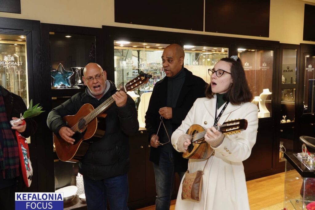 Έτσι και το βράδυ της παραμονής της Πρωτοχρονιάς ευχήθηκαν τα Χρόνια Πολλά και τραγούδησαν τα παραδοσιακά κεφαλλονίτικα κάλαντα στα κατάστημα της Οικογένειας Τζαννάτου στο Λιθόστρωτο,οπου ευχήθηκαν προσωπικά στον Θεόδωρο Τζαννάτο και στα παιδιά του Ελένη και Φιλλίπο Καλή Αποκοπή, και Ευτυχισμένο το Νέο Έτος.