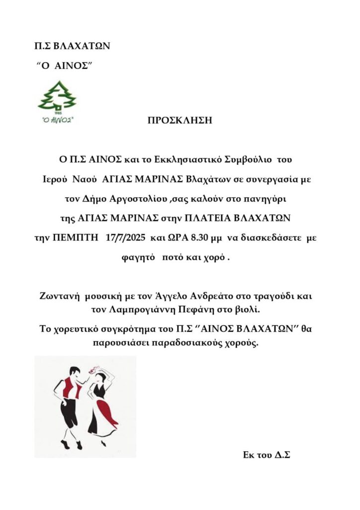 Πρόσκληση στο πανηγύρι της Αγίας Μαρίνας στην Πλατεία Βλαχάτων LIFE Newsroom 16/07/2025 ΓΡΑΦΕΙ Ο ΜΑΚΗΣ ΛΕΚΑΤΣΑΣ 16/07/2025 16/07/2025 16/07/2025 Share FacebookTwitterPinterestWhatsApp ΠΑΡΟΜΟΙΑ ΑΡΘΡΑ Previous articleΑφόρητη η κατάσταση από την παράνομη στάθμευση πάνω από την παραλία Καλάμια – Κίνδυνος για οδηγούς και επισκέπτες[pics]Next articleΑνοιχτό Ερώτημα προς τον κ. Γιάννη Λυκούδη, επικεφαλής της “Ισχυρής Κεφαλονιάς” –Που ήταν η παράταξη σας όταν αποφάσιζε η δημοτική επιτροπή για το θαλασσομόμυλο; ΣΧΟΛΙΑ ΧΡΗΣΤΩΝ LEAVE A REPLY Cancel reply Comment: Please enter your comment! Name:* Please enter your name here Email:* You have entered an incorrect email address! Please enter your email address here Website: Save my name, email, and website in this browser for the next time I comment. ΤΕΛΕΥΤΑΙΑ ΝΕΑ Λινάτσες, συρματοπλέγματα και εγκατάλειψη: η παλιά αγορά του Αργοστολίου σε τροχιά... 19/01/2026 Εκφραση ευχαριστιών του Βαλλιάνειου Γυμνασίου Κεραμειών στο Κέντρο 《Απόπλους》 19/01/2026 Δύο ταχύπλοα της Ιταλικής Ακτοφυλακής Frontex στο λιμάνι του Αργοστολίου –... 19/01/2026 «Ένα μικρό θολό φιλιστρίνι στον ολόφωτο πλού του Κώστα Ευαγγελάτου» 19/01/2026 Ευχαριστήριο μήνυμα της οικογένειας Βαγγελάτου για τη συμμετοχή στο πένθος της... 19/01/2026