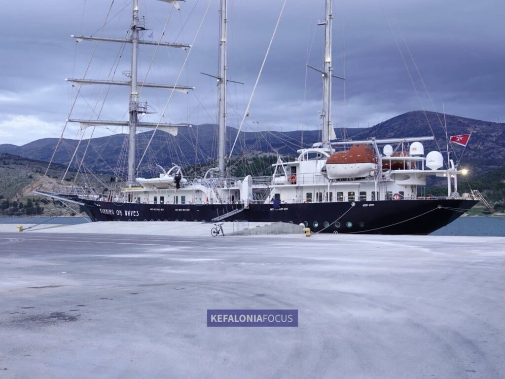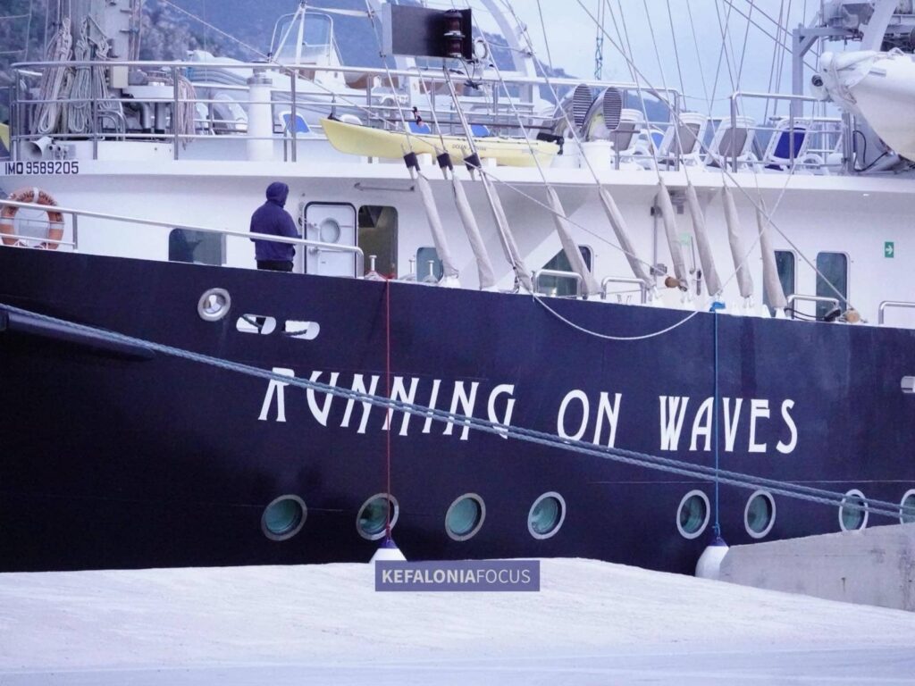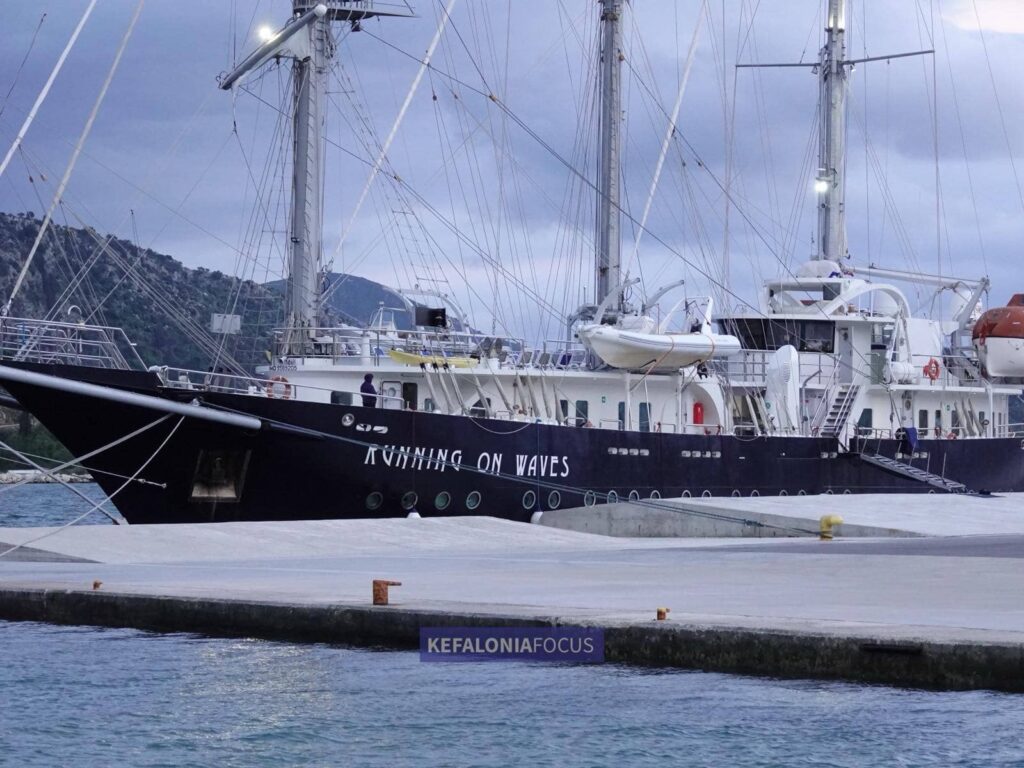 Μια ξεχωριστή και κομψή παρουσία κοσμεί απόψε το βράδυ το λιμάνι του Αργοστολίου. Πρόκειται για το πολυτελές ιστιοπλοϊκό “RUNNING ON WAVES”, ένα πλοίο μοναδικής αισθητικής και φιλοσοφίας, που συνδυάζει την αίσθηση του παραδοσιακού ιστιοφόρου με τις ανέσεις ενός πλωτού ξενοδοχείου πέντε αστέρων.