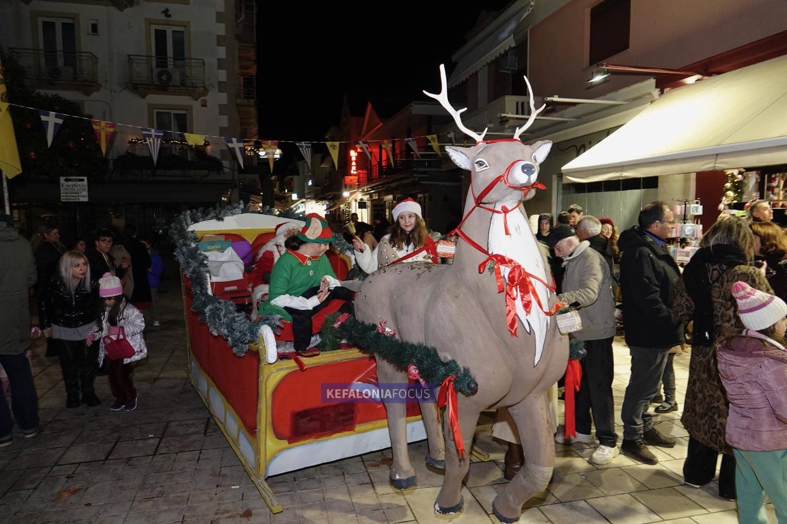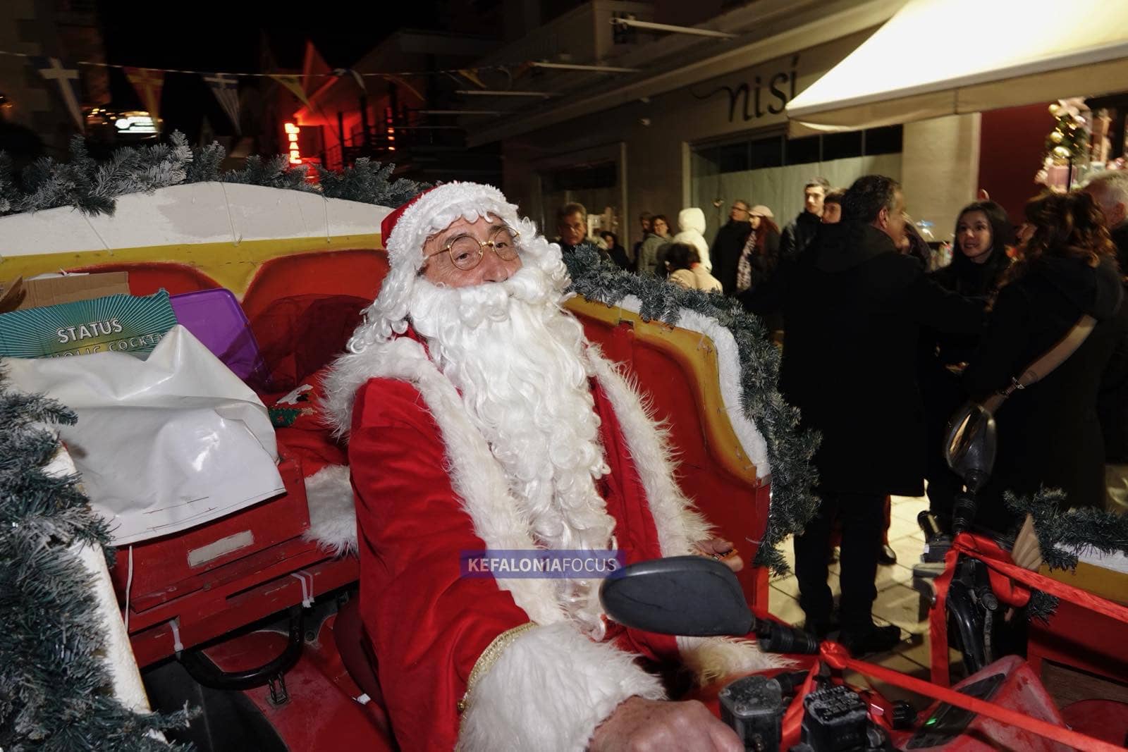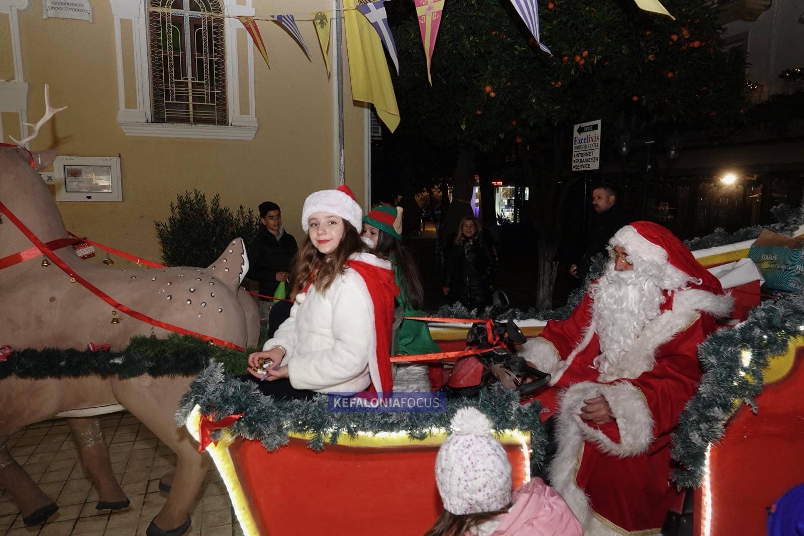 Η κορύφωση της βραδιάς ήρθε με την εντυπωσιακή άφιξη του Άγιου Βασίλη, ο οποίος εμφανίστηκε με το έλκηθρό του σκορπίζοντας ενθουσιασμό και παιδικά χαμόγελα. Τα μικρά παιδιά τον υποδέχθηκαν με λαχτάρα και ενθουσιασμό, πλησίασαν για να τον αγκαλιάσουν, να του ψιθυρίσουν τις ευχές τους και να φωτογραφηθούν μαζί του, ενώ εκείνος μοίραζε απλόχερα χαρά, αγάπη και γιορτινή διάθεση.