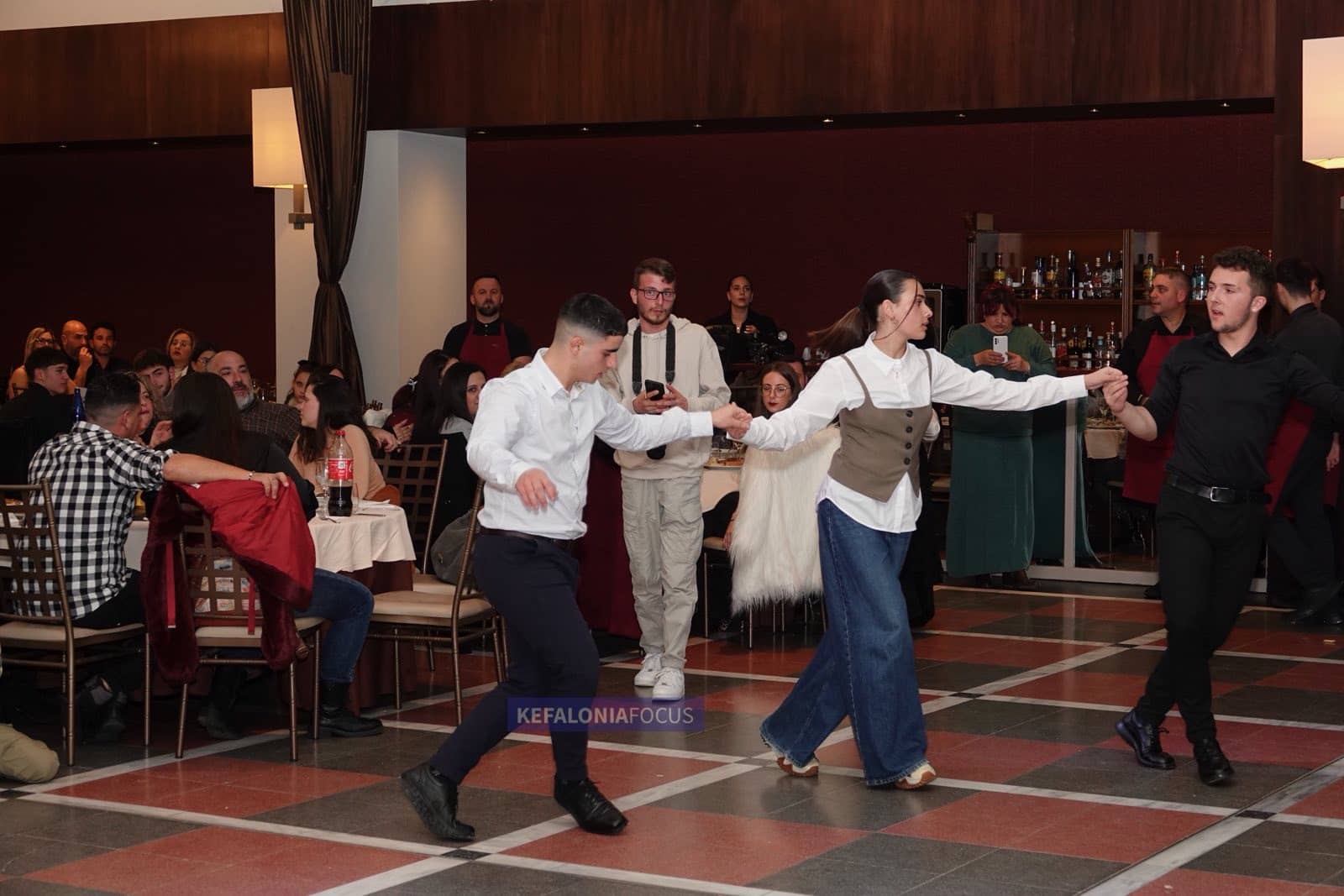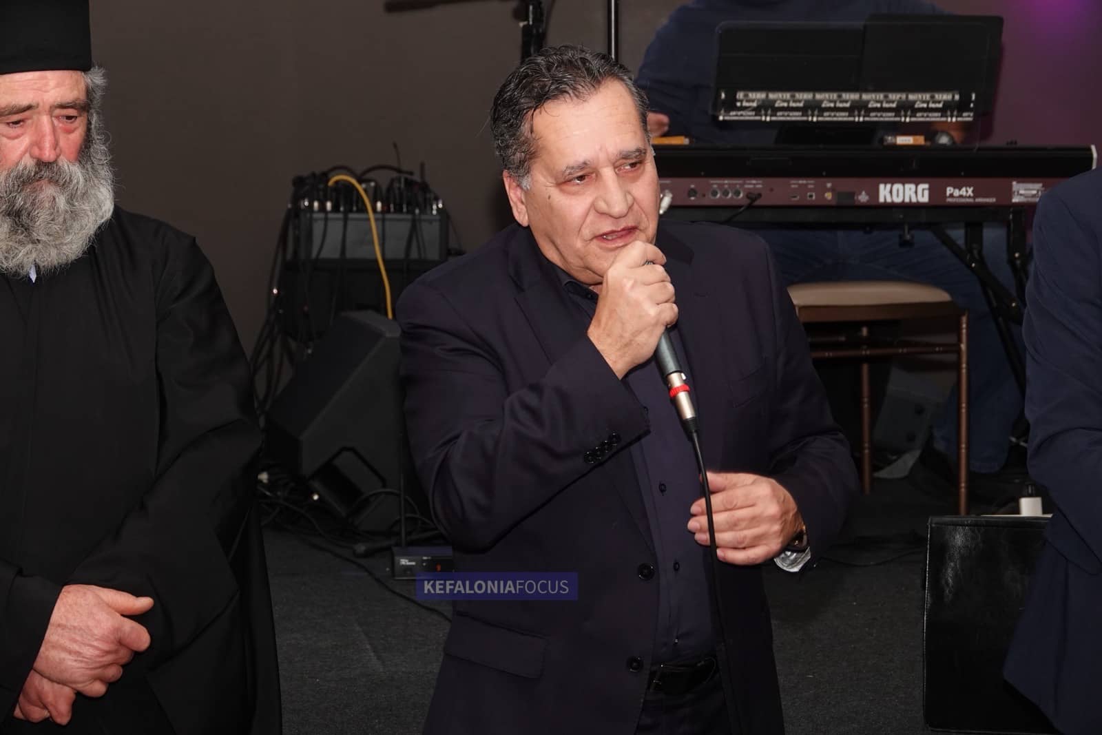 Στο βιολί, ο Ζήσης Σκλαβουνάκης έδωσε τον τόνο, με παιξίματα γεμάτα ευαισθησία αλλά και δύναμη, οδηγώντας ρυθμικά τους χορευτές και μεταφέροντας αυθεντικά το άρωμα της κεφαλονίτικης και νησιώτικης παράδοσης. Δίπλα του, ο Σπύρος Μπούρλης, με την καρδιά και την ψυχή του, ξεσήκωσε το κοινό· η φωνή του αντήχησε σε κάθε γωνιά της κατάμεστης αίθουσας, γεμίζοντας τον χώρο συναίσθημα, ένταση και αυθεντικότητα, κάνοντας μικρούς και μεγάλους να σιγοτραγουδούν και να χειροκροτούν ασταμάτητα.