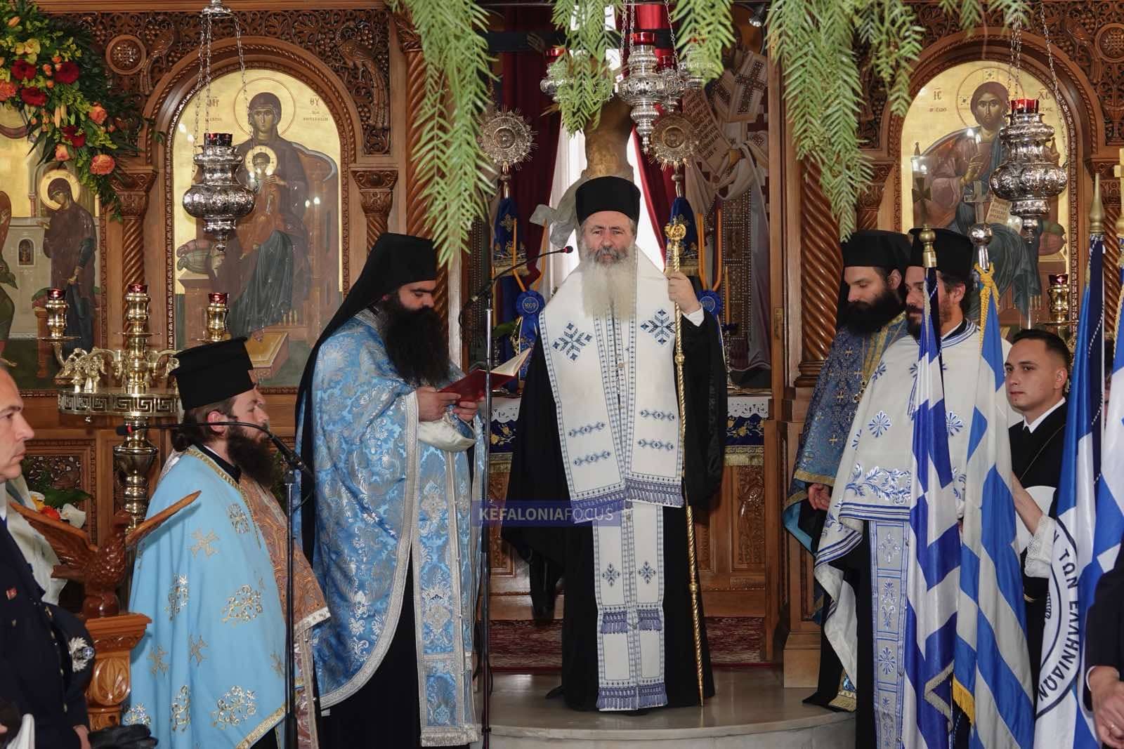 Η επίσημη δοξολογία τελέστηκε με τη δέουσα λαμπρότητα χοροστατούντος του Σεβασμιότατου Μητροπολίτη Κεφαλληνίας κ.κ. Δημήτριο, παρουσία όλης της πολιτικής ηγεσίας του τόπου εκπροσώπους των σωμάτων ασφαλείας και των αριστούχων μαθητών των σχολείων της πόλης μας που κρατούσαν με υπερηφάνεια την γαλανόλευκη.