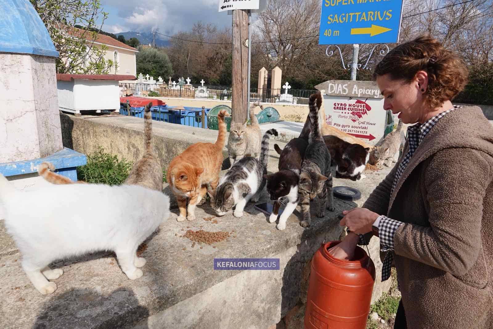 Τη συναντήσαμε ένα μεσημέρι του Μαρτίου, στη γνωστή διασταύρωση του χωριού προς Αγία Πελαγία και Άβυθο , όπου καθημερινά αφήνει τροφή και νερό.Εκεί, ανάμεσα στις γάτες που την πλησιάζουν με εμπιστοσύνη, μας μίλησε για όλα όσα κάνει. Με απλότητα. Με καλοσύνη. Με εκείνο το βλέμμα που δείχνει ότι δεν το κάνει για να ακουστεί, αλλά γιατί το νιώθει.