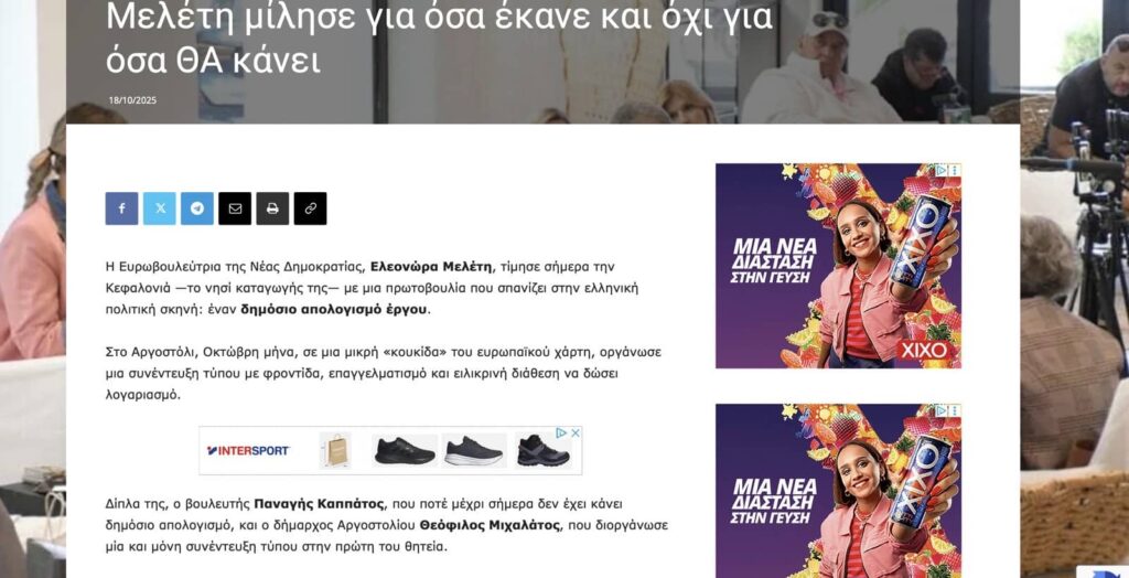 Η δημόσια λογοδοσία δεν αποτελεί για εμένα μια περιστασιακή ενέργεια, αλλά διαρκή υποχρέωσηαπέναντι στους συμπολίτες μου στην Κεφαλονιά και την Ιθάκη και στον θεσμικό μου ρόλο.