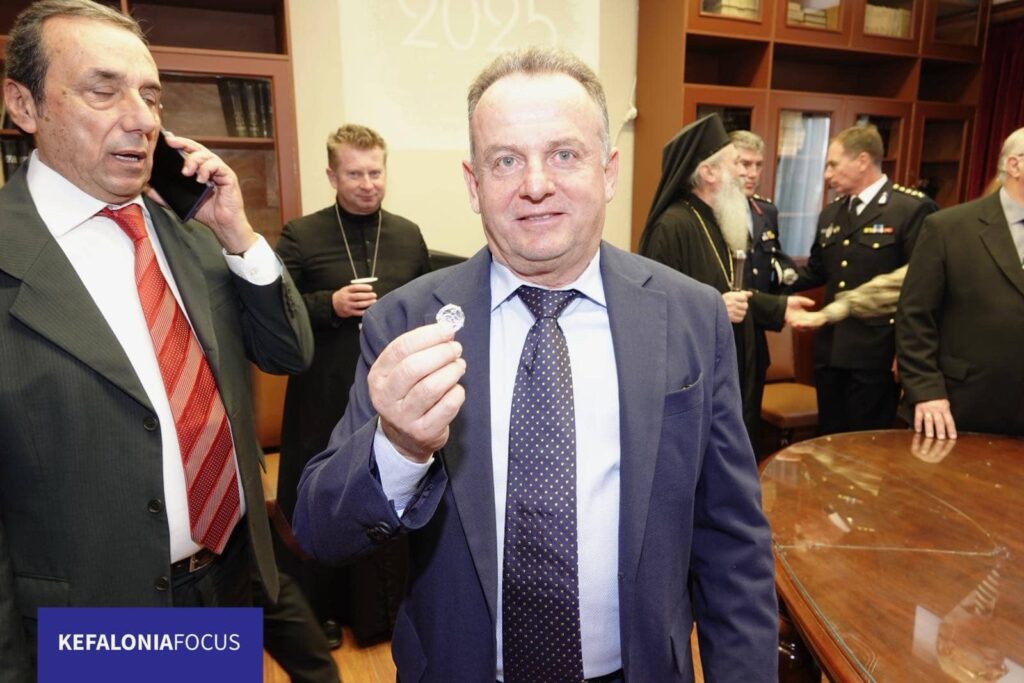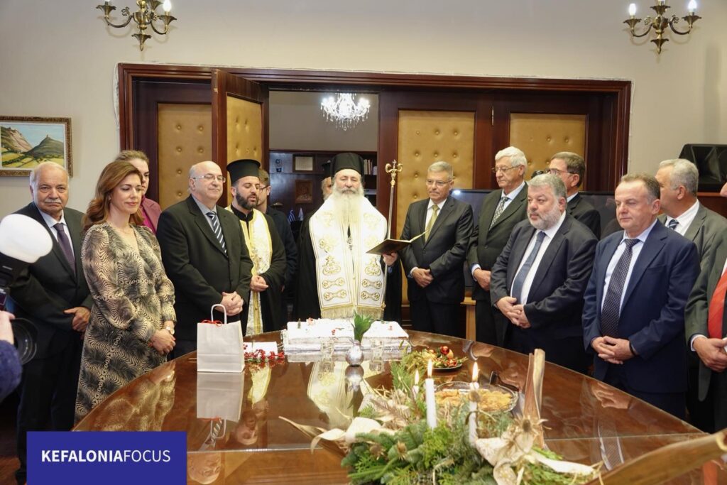 Την κοπή της Πρωτοχρονιάτικης πίτας παρουσία του Σεβασμιοτάτου Μητροπολίτη Κεφαλληνίας κ.κ Δημήτριου που τέλεσε τον Αγιασμό έκανε ο Αντιπεριφερειάρχης Σωτήρης Κουρής ανταλλάσσοντας ευχές με τον βουλευτή Παναγή Καππάτο,τον Δήμαρχο Αργοστολίου Θεόφιλο Μιχαλάτο,τον Δήμαρχο Σάμης Παναγή Δρακουλογκώνα,την Αντιπεριφερειάρχη Επιχειρηματικότητας&Αποδήμων Ελένη Παπαναστασάτου,τον πρόεδρο του Δημοτικού Συμβουλίου Νικόλαο Βαλλιανάτο,τους αντιδήμαρχους του Δήμου Αργοστολίου Σπύρο Σαμούρη,Νίκο Κουρκουμέλη,Διονύση Κωνσταντάτο,τον Αντιδήμαρχο του Δήμου Σάμης Σπύρου Σπαθή τον προέδρο του ΟΚΑΠ Γιώργο Λασκαράτο τον Αστυνομικού Διευθυντή Ιωάννη Μπούμη τον Διοικητή της Π.Υ Κεφαλλονιάς Καραγεωργιάδη Μιλτιάδη την Λιμενάρχη Κεφαλλονιάς Ανθούλα Νταβάκου,του Γραμματέα του Επιμελητηρίου Κεφαλονιάς&Ιθάκης Σπύρου Κατσούρη,και του προέδρου του Συλλόγου Ναυτικών Σπύρου Λασκαράτου.