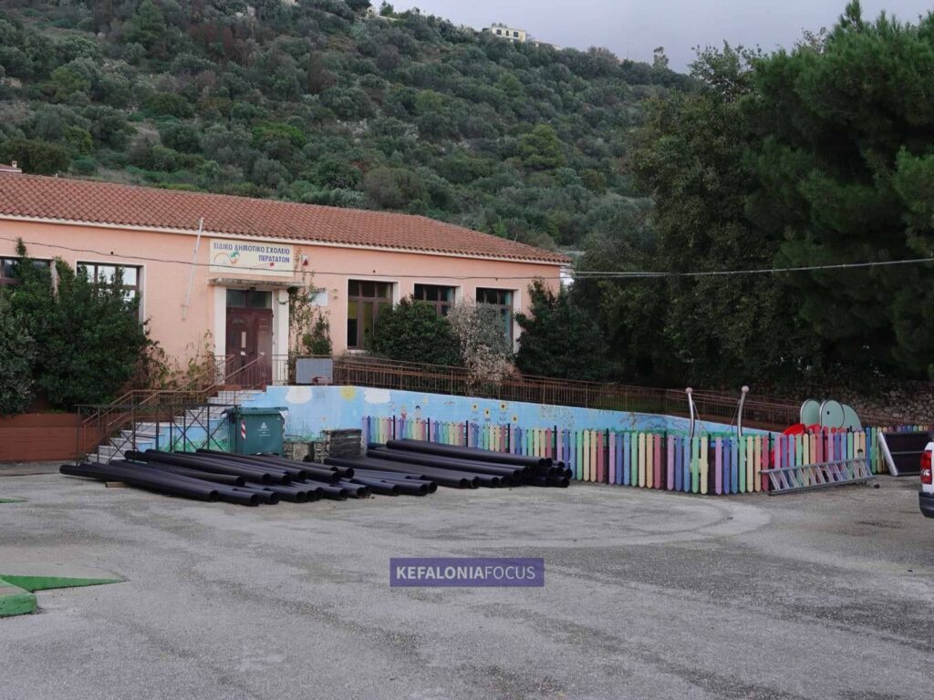 Στην αυλή, εκεί όπου κάποτε υπήρχε παιδική χαρά για τα παιδιά του σχολείου, σήμερα επικρατεί εικόνα πλήρους εγκατάλειψης. Τα παιχνίδια έχουν ξηλωθεί και παραμένει άγνωστο αν έχουν μεταφερθεί ή απλώς καταστραφεί.