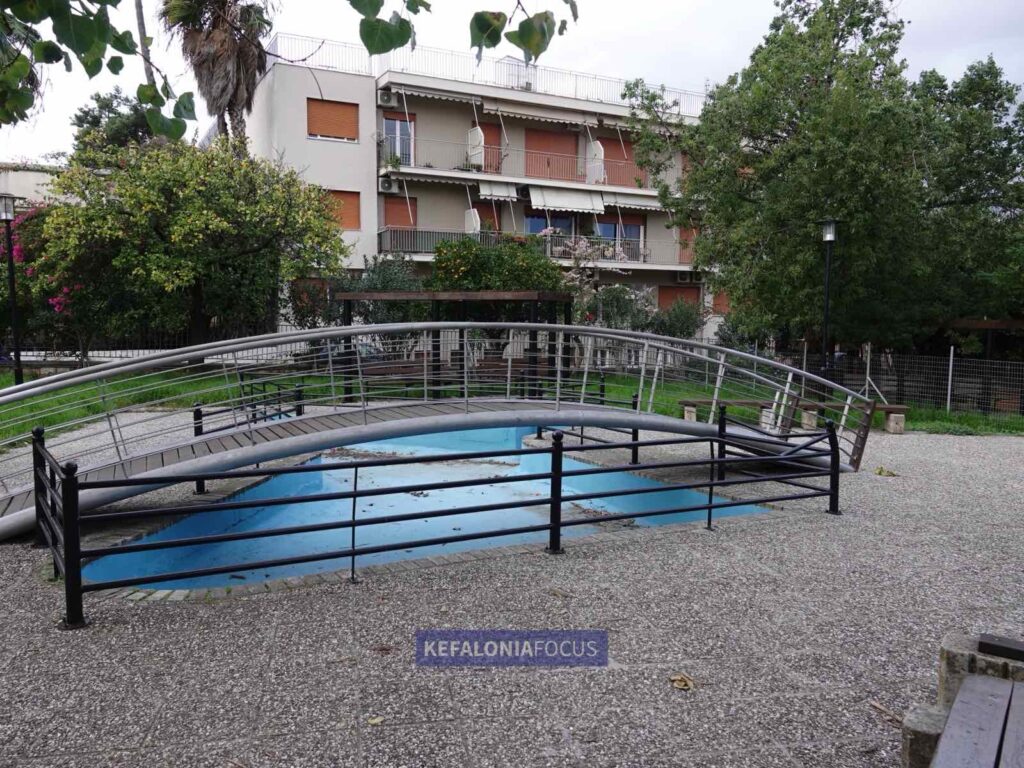Στο πάνω μέρος του πάρκου, η τεχνητή λίμνη βρίσκεται σε πλήρη εγκατάλειψη. Άδεια από νερό, γεμάτη σκουπίδια, φύλλα και βρωμιά. Ένας χώρος που θα μπορούσε να αποτελεί σημείο δροσιάς και αισθητικής λειτουργεί πλέον σαν «παγίδα» ακαθαρσίας. Το θέαμα που παρουσιάζει ενισχύει την αίσθηση ότι το πάρκο έχει αφεθεί στην τύχη του εδώ και πολύ καιρό.
