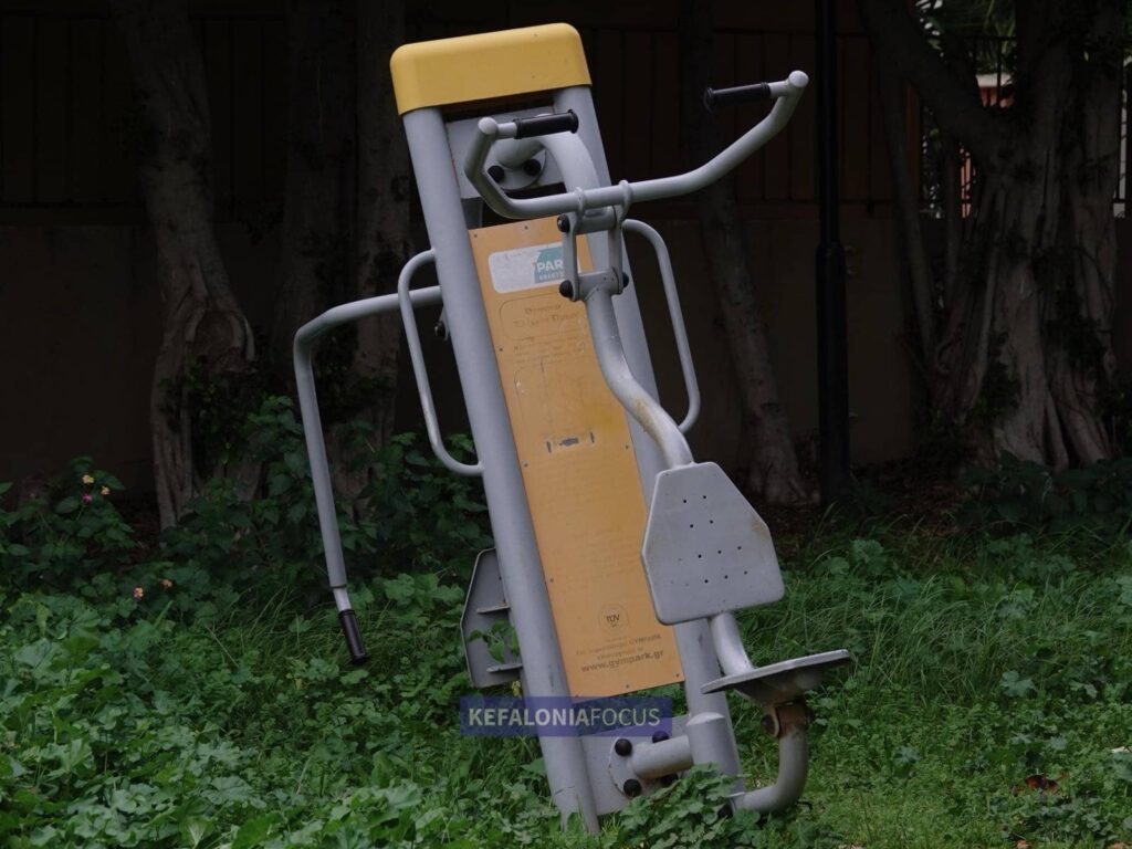 Λίγο πιο δίπλα, το μικρό υπαίθριο γυμναστήριο παρουσιάζει εικόνα εξίσου απογοητευτική. Όργανα γυμναστικής γερμένα, φθαρμένα, με ορατό κίνδυνο ατυχήματος. Μια εγκατάσταση που θα μπορούσε να ενθαρρύνει την άσκηση, τον περίπατο και την καθημερινή ευεξία των πολιτών, σήμερα αντικατοπτρίζει μόνο παραμέληση και έλλειψη συντήρησης.