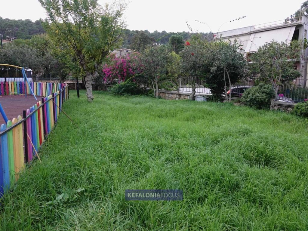 Ο χώρος που φιλοξενεί την παιδική χαρά – έναν από τους πιο ευαίσθητους και σημαντικούς δημόσιους χώρους – είναι περιτριγυρισμένος από ακαθάριστα χορτάρια, λακκούβες και εδάφη ανομοιόμορφα, επικίνδυνα για παιδιά και συνοδούς. Αντί για έναν ασφαλή και περιποιημένο χώρο παιχνιδιού, το σημείο θυμίζει αγρό, σαν να βρίσκεται σε επαρχία που έχει εγκαταλειφθεί εδώ και μήνες. Η εικόνα δεν συνάδει σε καμία περίπτωση με την κεντρικότερη περιοχή της πρωτεύουσας της Κεφαλονιάς.