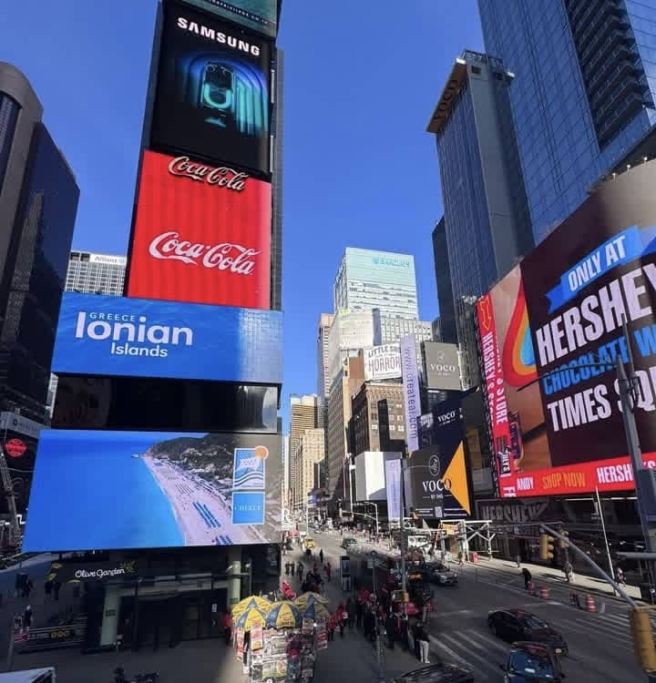 Στην εμβληματική Times Square προβάλλεται η καμπάνια της Περιφέρειας Ιονίων Νήσων για τα νησιά μας, σε τεράστιες γιγαντοοθόνες και στην πιο προβεβλημένη θέση της πλατείας, μεταφέροντας τη μοναδική εικόνα του Ιονίου στην καρδιά μιας από τις σημαντικότερες μητροπόλεις του κόσμου.
