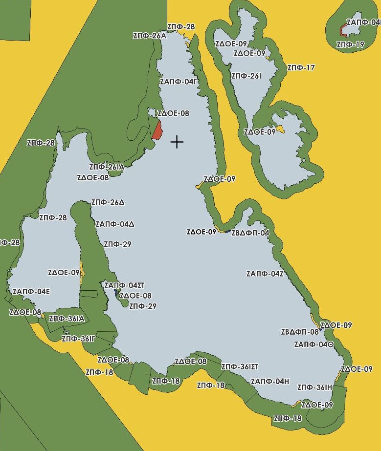 Όλες οι παραπάνω ζώνες είναι θαλάσσιες, με εξαίρεση τις περιοχές ωοτοκίας της χελώνας (Ζώνη 36), οι οποίες είναι χερσαίες.
