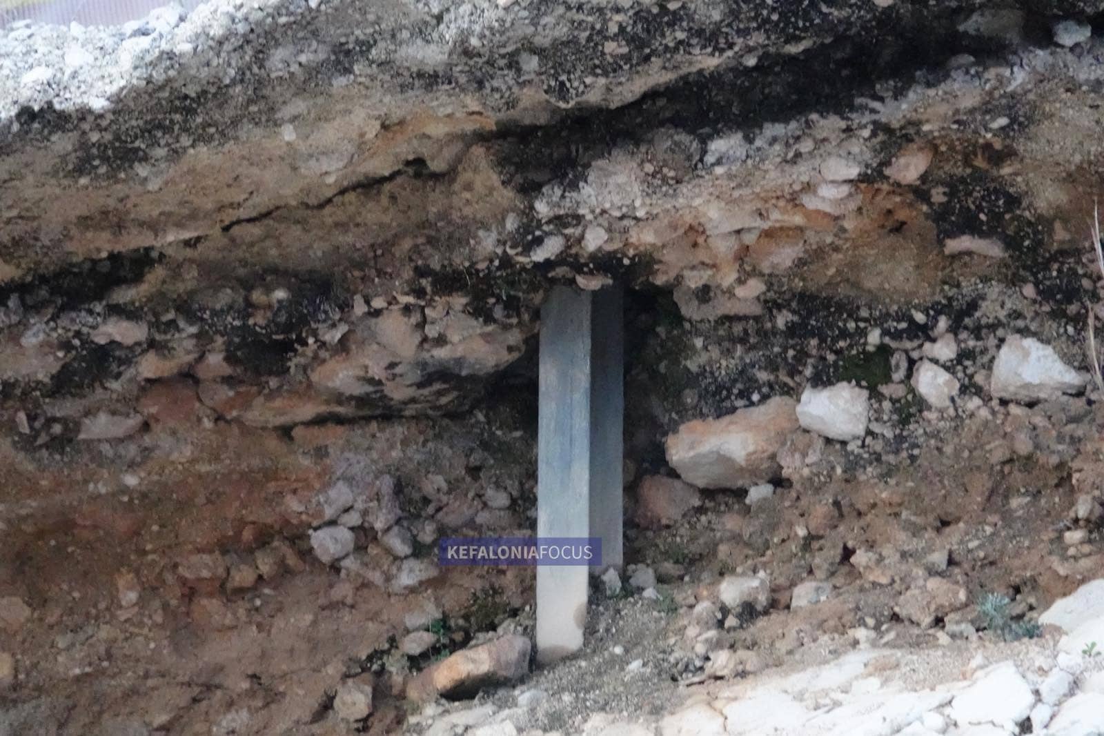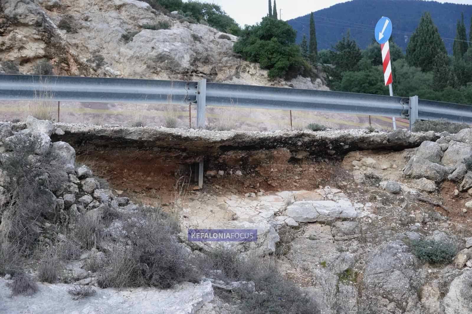 Το πιο ανησυχητικό στοιχείο είναι ότι το οδόστρωμα κυριολεκτικά «κρέμεται» πάνω από την επαρχιακή οδό Αργοστόλι–Πόρος. Η παραμικρή επιπλέον διάβρωση, μια έντονη βροχόπτωση ή μια κατολίσθηση μπορεί να οδηγήσει σε κατάρρευση, με απρόβλεπτες συνέπειες για την ασφάλεια των οδηγών και των κατοίκων της περιοχής.