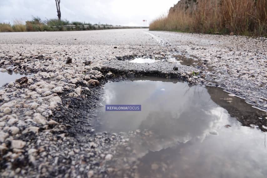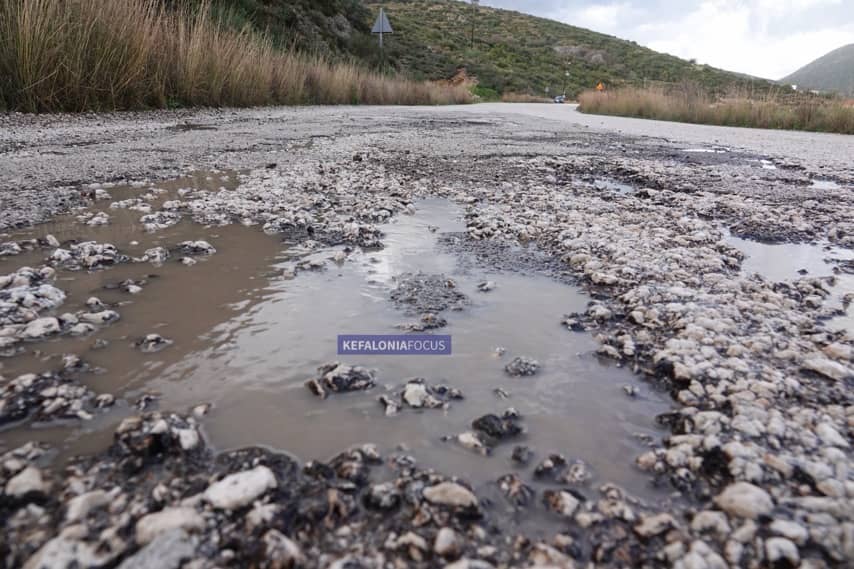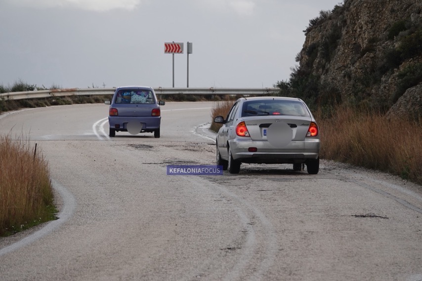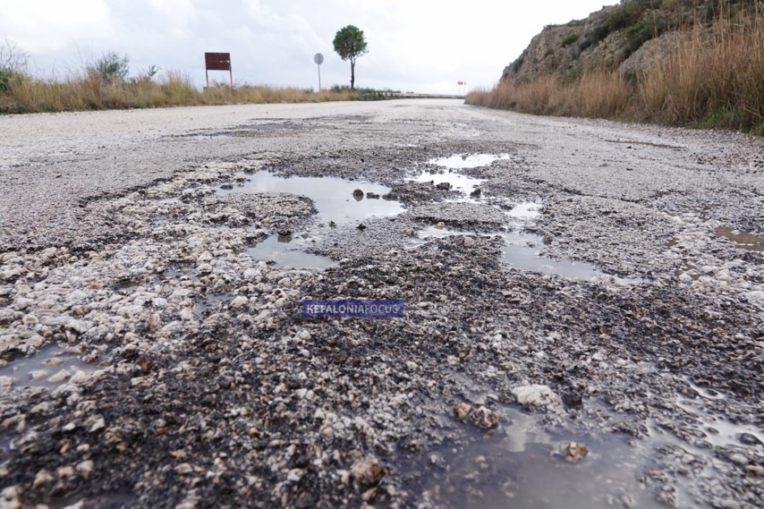 Η εικόνα του οδοστρώματος λίγο πριν το Κρεμμύδι, στην επαρχιακή οδό Αργοστόλι–Πόρος, δεν αφήνει περιθώρια παρερμηνειών: η άσφαλτος είναι κυριολεκτικά διαλυμένη. Κάτοικοι της περιοχής μάς ενημέρωσαν ότι το συγκεκριμένο τμήμα του δρόμου δεν έχει δεχθεί ουσιαστική συντήρηση εδώ και περίπου πενήντα χρόνια, από τότε δηλαδή που ασφαλτοστρώθηκε για πρώτη φορά. Το αποτέλεσμα είναι ένα οδόστρωμα γεμάτο λακκούβες, καθιζήσεις και φθορές που αποτελούν καθημερινή παγίδα για τους δεκάδες οδηγούς που κινούνται στον άξονα.
