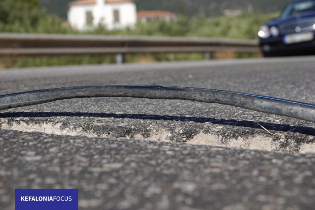 Ο εύκαμπτος σωλήνας όπως διαπιστώνεται,έχει τοποθετηθεί επιφανειακά του οδοστρώματος και η αποκατάσταση της ασφάλτου είχε γίνει με πολύ πρόχειρο τρόπο,όπως συμβαίνει πολύ συχνά στη χώρα μας μετά απο παρεμβάσεις τοποθέτησης δικτύων κοινής ωφέλειας.Άς φροντίσουν άμεσα οι υπεύθυνοι της Περιφέρειας την αποκατάσταση του οδοστρώματος και να ελέγξουν την νομιμότητα τοποθέτησης οικιακού σωλήνα στην πιο βασική επαρχιακή οδό της Κεφαλονιάς.