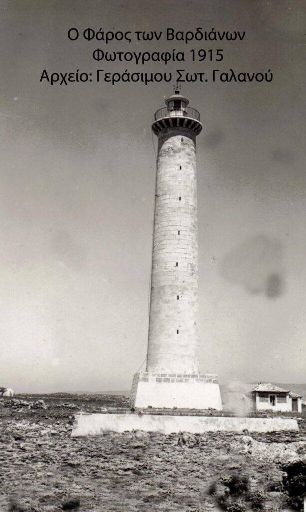 Στο πιο στενό σημείο του νησιού των Βαρδιάνων, αυτό που βλέπει προς το άνοιγμα του κόλπου του Λιβαδίου, ο Άγγλος Κάρολος Νάπιερ (Charles James Napier) έφτιαξε έναν επιβλητικό φάρο. Το Φάρο σχεδίασε ο μηχανικός του Νάπιερ, Κέννεντι το 1829, τον οποίο καταστρέψανε Ιταλικά στρατεύματα κατοχής κατά το 1942. Επρόκειτο για ψηλό κυλινδρικό κτίσμα, ύφους 34 μέτρων, με εστιακό του ύψος ήταν 28 μέτρα και έδειχνε στους ναυτικούς την τεσσάρων χιλιομέτρων είσοδο του κόλπου Λιβαδίου. Στη θέση του βρίσκεται ένας άλλος κατά πολύ μικρότερος φάρος για την εξυπηρέτηση των πλοίων. Κατά πολλούς ο Φάρος φτιάχτηκε το 1824.