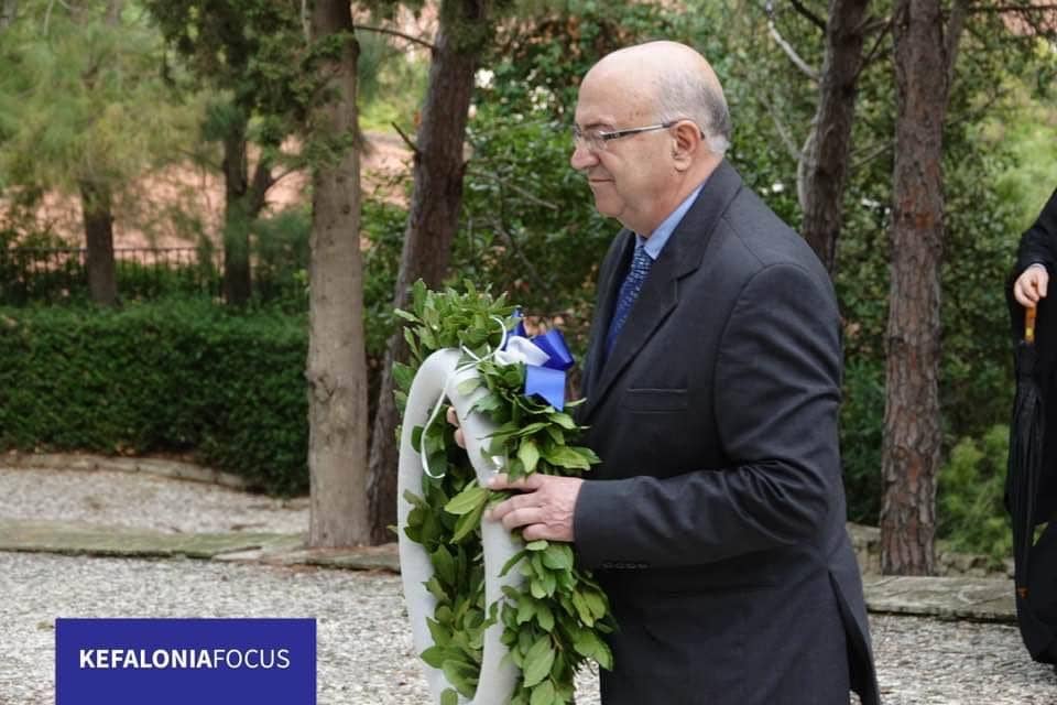 Ακολούθησε η επιμνημόσυνη δέηση στο μνημείο των ηρώων στο Νάπιερ, καθώς και κατάθεση στεφάνων από τον Αντιπεριφερειάρχη Κεφαλονιάς&Ιθάκης Σωτήρη Κουρή, του Προέδρου του Δ.Σ του Δήμου Αργοστολίου Νικολάου Βαλλιανάτου εκπροσώπων της Αστυνομίας,του Λιμεναρχείου της Πυροσβεστικής,και του Σταύρου Τουλάτου από την Νομαρχιακή του ΠΑΣΟΚ.