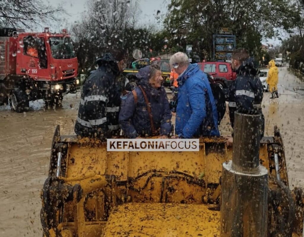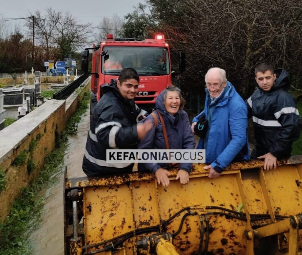 Ένα ζευγάρι Βρετανών τουριστών διασώθηκε από εθελοντική ομάδα στα Σβορωνάτα Κεφαλονιάς, όταν οι ξαφνικές πλημμύρες τους εγκλώβισαν στο κατάλυμά τους.