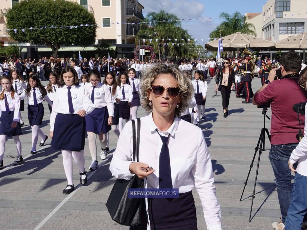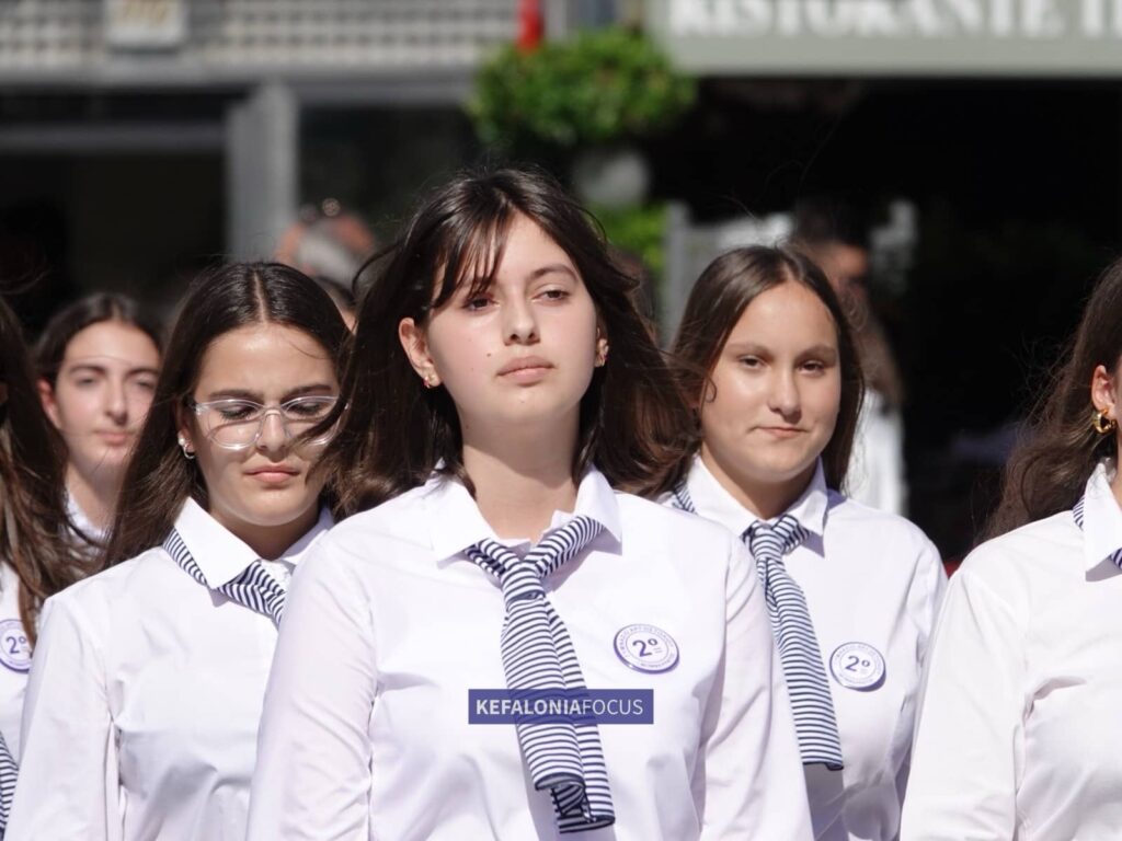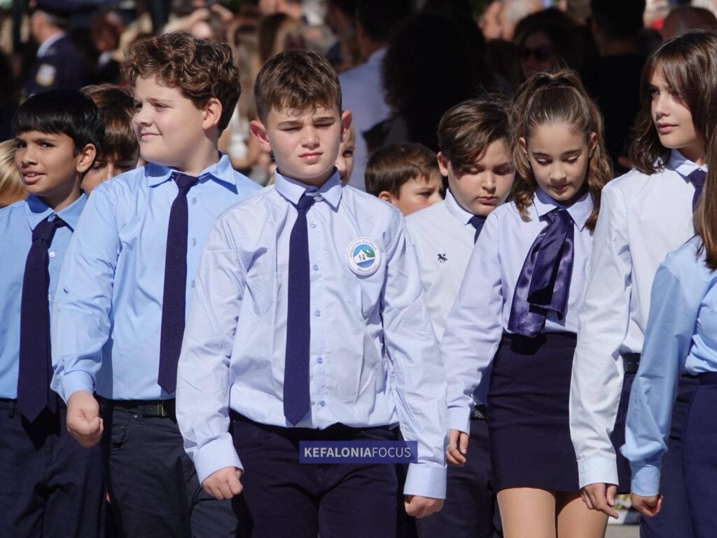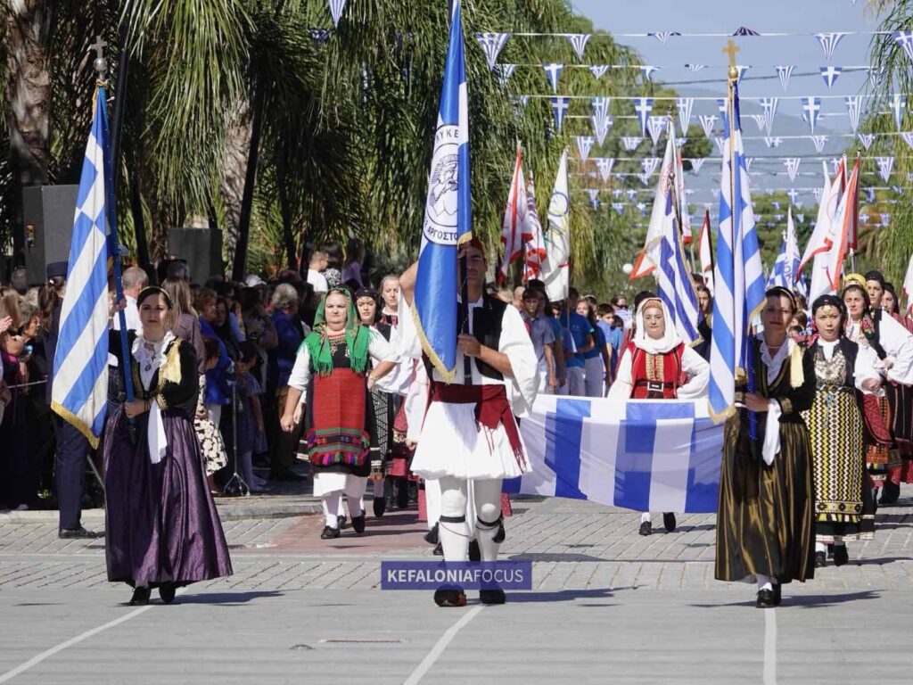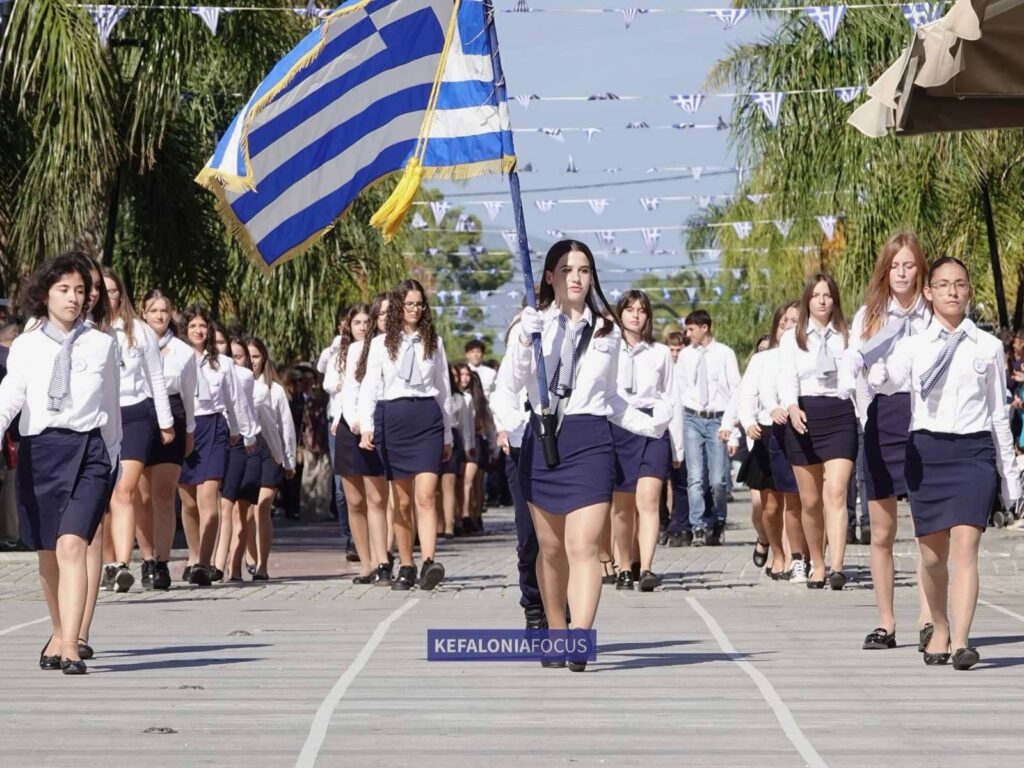 Η κορύφωση του εορτασμού ήρθε με τη μαθητική παρέλαση που πραγματοποιήθηκε στην παραλιακή λεωφόρο του Αργοστολίου. Η μαθητιώσα νεολαία της Πρωτοβάθμιας και Δευτεροβάθμιας Εκπαίδευσης παρέλασε με περηφάνια, κρατώντας ψηλά τη γαλανόλευκη, αποσπώντας το θερμό χειροκρότημα των πολιτών που κατέκλυσαν την κεντρική πλατεία .
