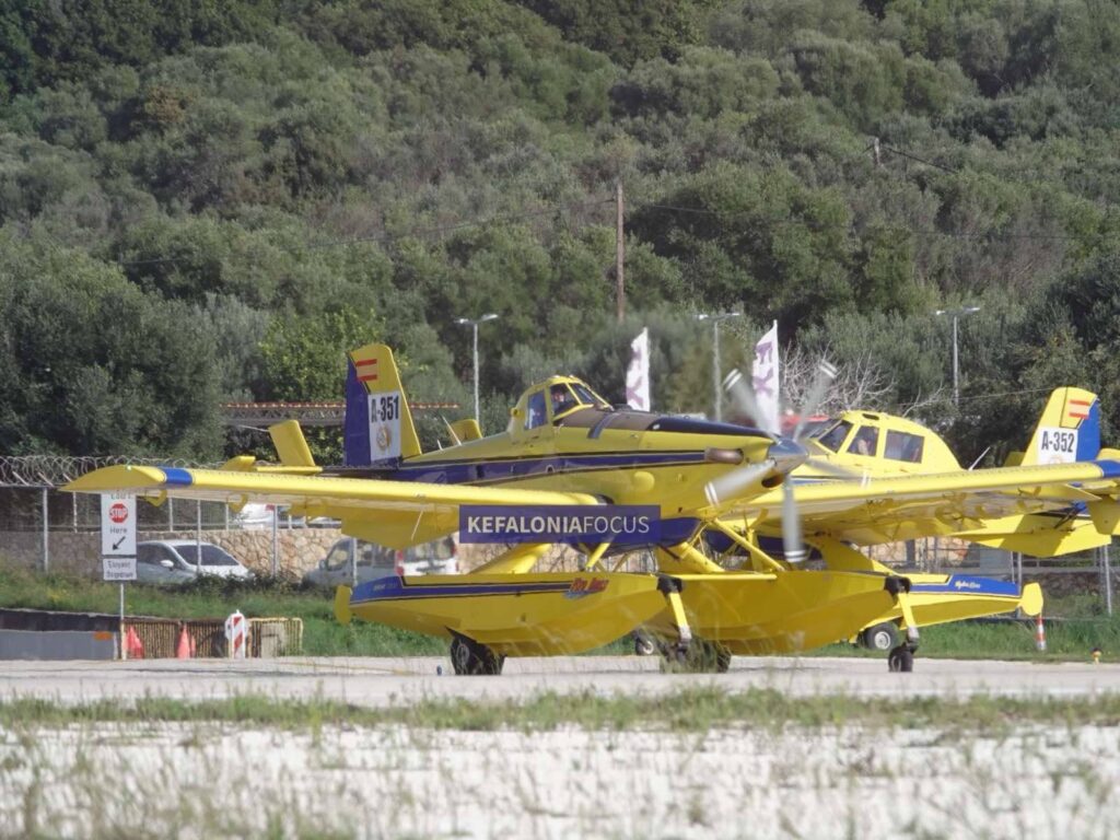 Μια ιδιαίτερη – και σπάνια – αεροπορική επίσκεψη σημειώθηκε σήμερα στο αεροδρόμιο της Κεφαλονιάς, όπου δύο πυροσβεστικά αεροσκάφη τύπου Air Tractor AT-802F Fireboss προσγειώθηκαν για ανεφοδιασμό στη διάρκεια της πτήσης τους από την Κωνσταντινούπολη προς την Ιταλία.