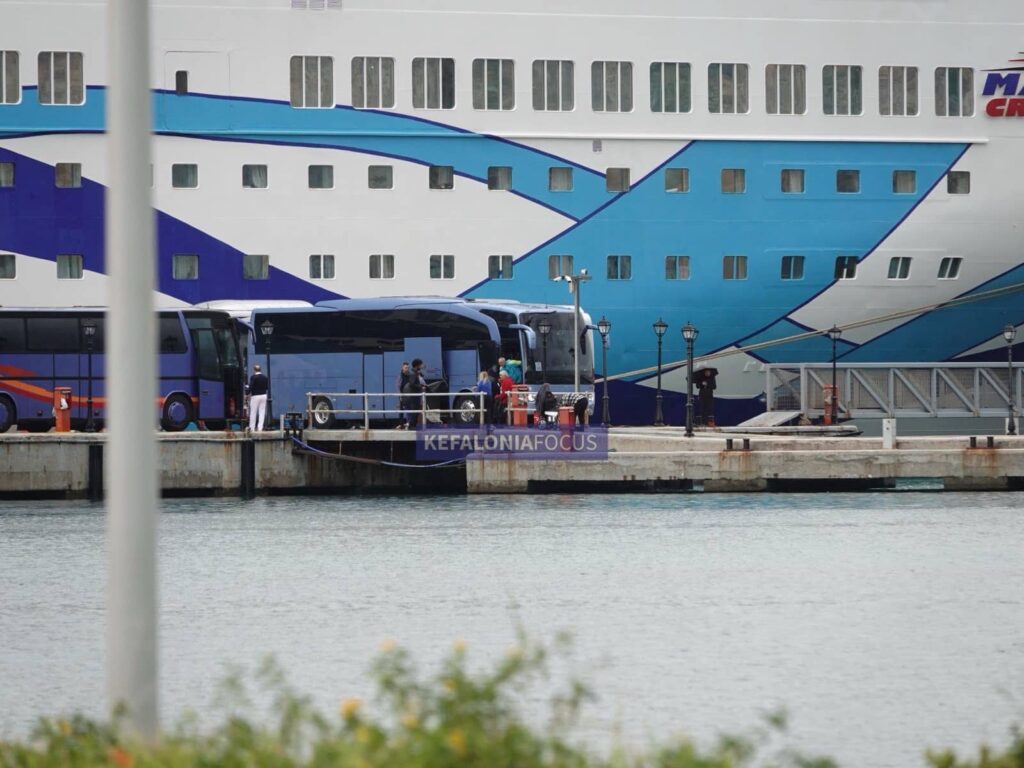 Οι επιβάτες του Crown Iris αποβιβάζονται με τάξη και επιβιβάζονται απευθείας στα τουριστικά λεωφορεία που έχουν σταθμεύσει εντός της προβλήτας, μέσα στη ζώνη λιμένος, χωρίς να εξέλθουν σε κοινόχρηστους χώρους του λιμανιού. Από εκεί αναχωρούν για τις προγραμματισμένες εκδρομές τους σε Δρογκαράτη, Μελισσάνη και άλλες τουριστικές περιοχές του νησιού.