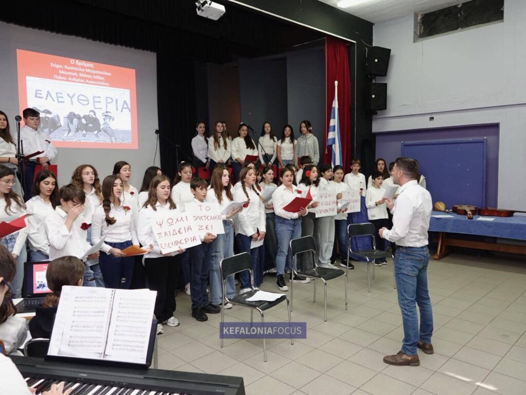 Συνοδοιπόρος σε αυτή την προσπάθεια, ο καθηγητής μουσικής, κ. Παναγιώτης Μάνδηλας, ανέδειξε την καλλιτεχνική διάσταση της εκδήλωσης, προσφέροντας στα παιδιά τα εφόδια για να εκφράσουν μελωδικά τη συγκίνηση και το πάθος τους. Η επιμέλειά του στην προετοιμασία της χορωδίας, αλλά και η καθοδήγηση στα όργανα – κιθάρα, πιάνο, μαντολίνο – μετέτρεψαν κάθε μελωδία σε γέφυρα που ένωνε το παρελθόν με το παρόν, και τη μνήμη με την καρδιά των μαθητών.