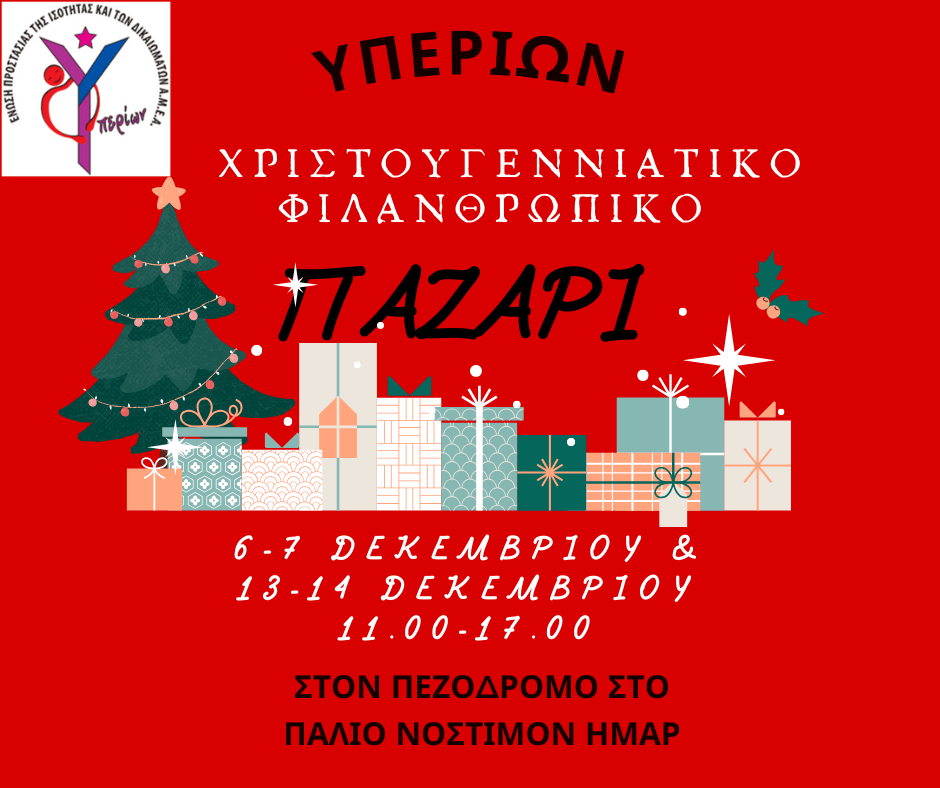 Φιλανθρωπικό Χριστουγεννιάτικο Παζάρι διοργανώνει ο “ΥΠΕΡΙΩΝΑΣ”
