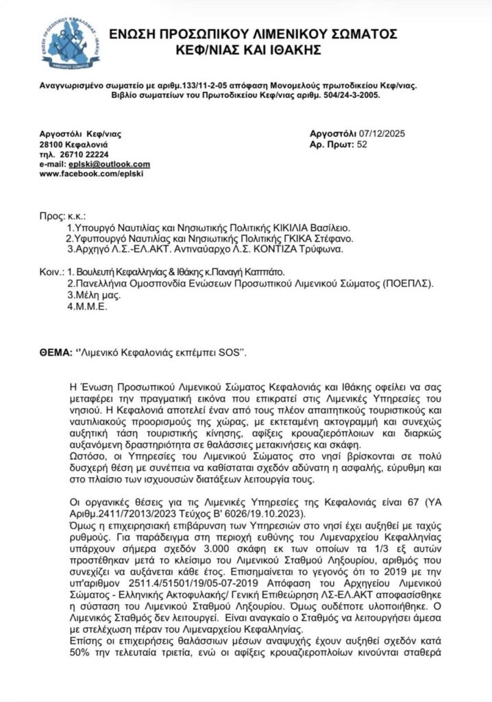 Λιμενικό Κεφαλονιάς σε οριακό σημείο – Επίσημη έκκληση για άμεση ενίσχυση ΚΟΙΝΩΝΙΑ Newsroom 07/12/2025 ΓΡΑΦΕΙ Ο ΜΑΚΗΣ ΛΕΚΑΤΣΑΣ 07/12/2025 07/12/2025 07/12/2025 Share FacebookTwitterPinterestWhatsApp ΠΑΡΟΜΟΙΑ ΑΡΘΡΑ Previous articleΜουσική Βραδιά Στήριξης για το Κοργιαλένειο Μουσείο – Κάλεσμα από τον Ρωσσέτο ΛούζηNext articleΠαραμυθένια Χριστούγεννα στην Ιθάκη – Μια βραδιά γεμάτη φως, μουσική και χαμόγελα[pics&vid] ΣΧΟΛΙΑ ΧΡΗΣΤΩΝ LEAVE A REPLY Cancel reply Comment: Please enter your comment! Name:* Please enter your name here Email:* You have entered an incorrect email address! Please enter your email address here Website: Save my name, email, and website in this browser for the next time I comment. ΤΕΛΕΥΤΑΙΑ ΝΕΑ «Dream Team» Λυκούδη: Οι επιλογές που σηματοδοτούν το τουριστικό μέλλον της... 18/01/2026 Ο Πολιτιστικός Σύλλογος «Αγία Πελαγία» Σβορωνάτων έκοψε τη βασιλόπιτα – Μνήμη,... 18/01/2026 Στο σπίτι του Σίμου στο Ρούδι: Αφηγήσεις ζωής και εξερεύνησης στα... 18/01/2026 Γιώργος Λασκαράτος για τον Γιώργο Στρατιώτη: Το Αγκυροβόλιο Αγίας Πελαγίας ως... 18/01/2026 Η πόλη μας.H πόλη με τα ψηλά μπαλκόνια. 18/01/2026