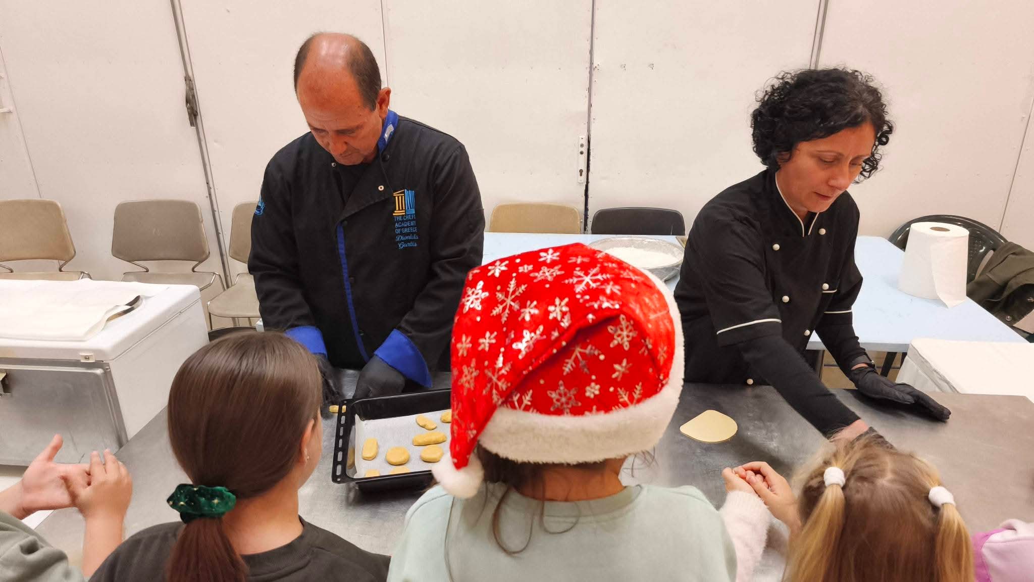 Τα παιδιά μας μπόρεσαν να μάθουν έμπρακτα από τους έμπειρους ζαχαροπλάστες Διονύση Γαρμπή και Σορένα Κουμπράτζε του Stateri Catering τα μυστικά της τέχνης για το πως φτιάχνονται Χριστουγεννιάτικα γλυκά όπως οι κουραμπιέδες αλλά και κουλούρια πορτοκαλιού τα οποία στη συνέχεια είχαν τη χαρά να απολαύσουν και να προσφέρουν με υπερηφάνεια στους χαρούμενους γονείς τους!