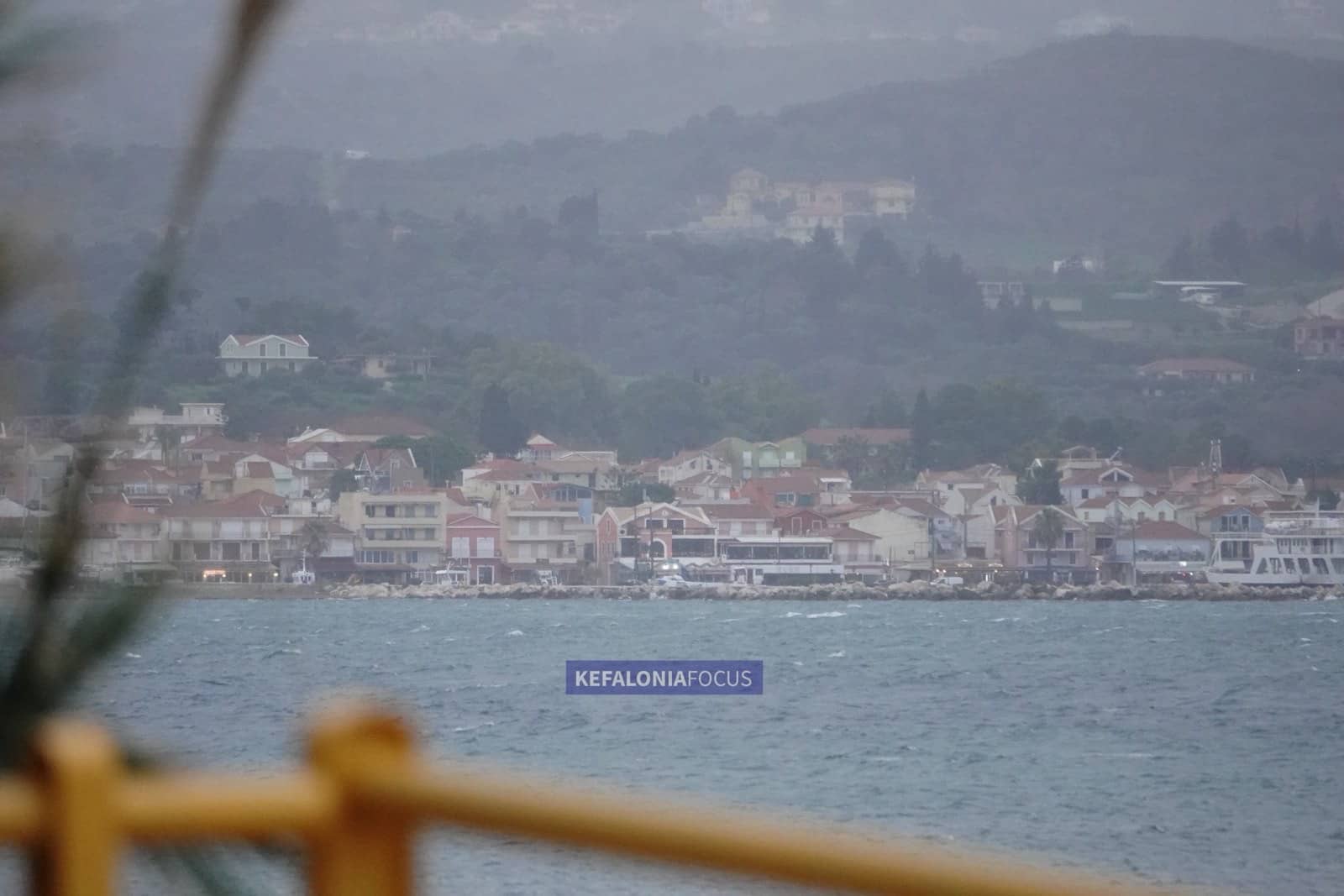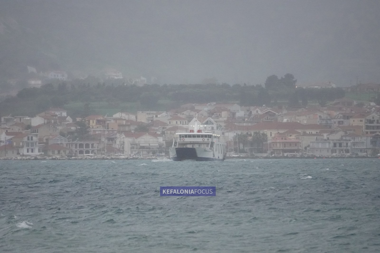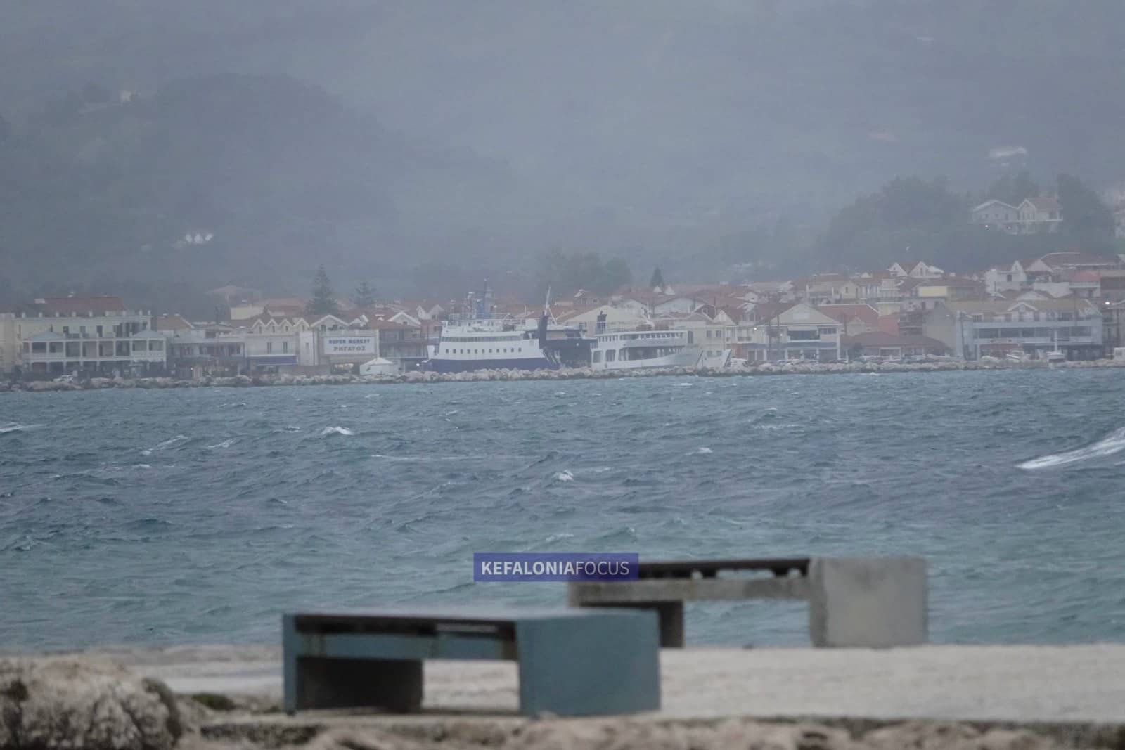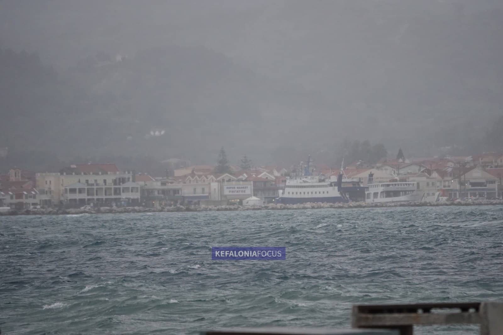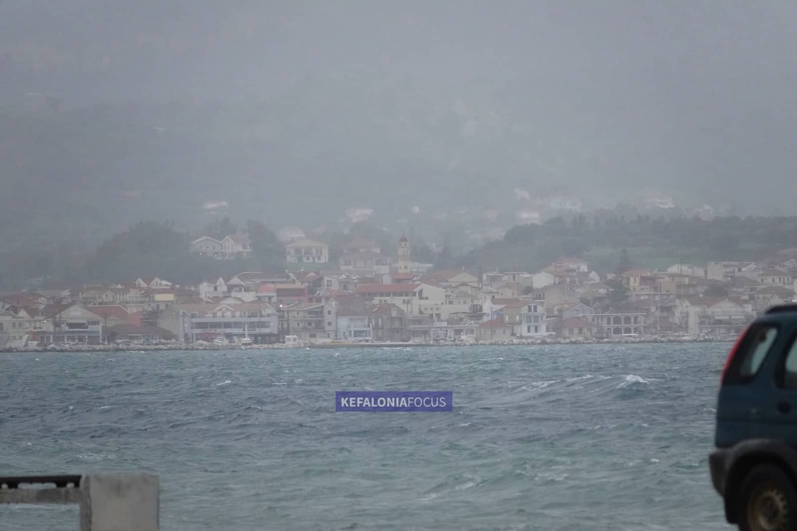 Στην παραλιακή ζώνη του Ληξουρίου η θάλασσα ήταν ιδιαίτερα ταραγμένη, με υψηλό κυματισμό και ριπές ανέμου που έκαναν αισθητή την παρουσία τους από νωρίς το απόγευμα, ενώ κατά διαστήματα η ορατότητα μειωνόταν λόγω της έντασης των φαινομένων.