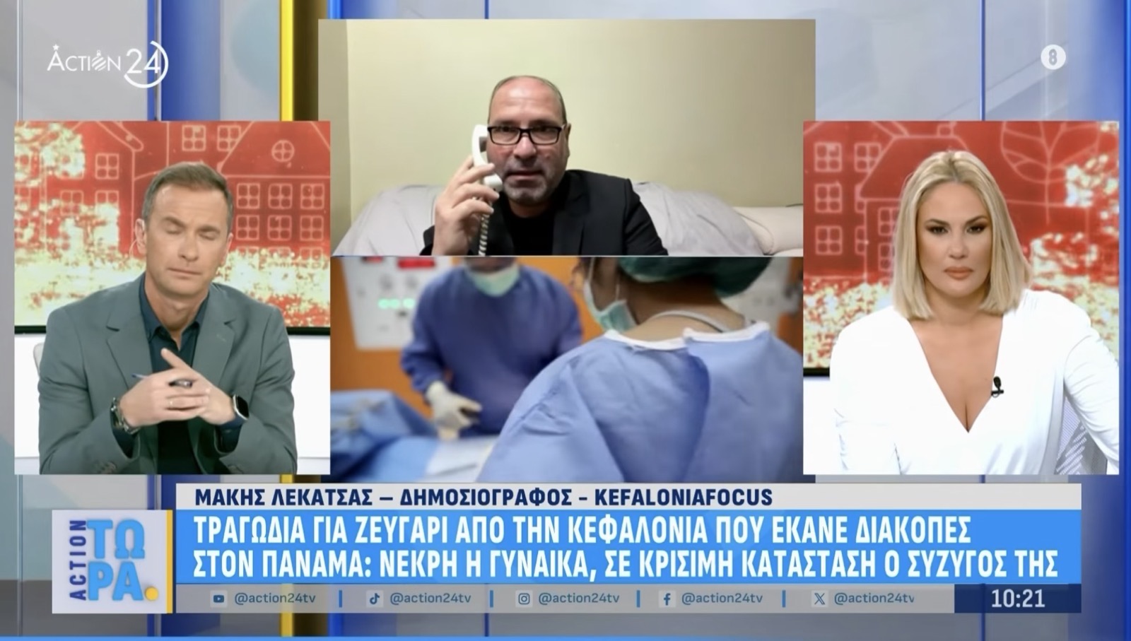 Βαθιά συγκίνηση και έντονη ανησυχία προκαλεί στην Κεφαλονιά η ανθρώπινη τραγωδία που αφορά ζευγάρι από το νησί και η οποία βρέθηκε στο επίκεντρο της εκπομπής «ACTION ΤΩΡΑ» στο κανάλι ACTION 24, με παρουσιαστές τη Ντόρα Κουτροκόη και τον Γιώργο Γρηγοριάδη.