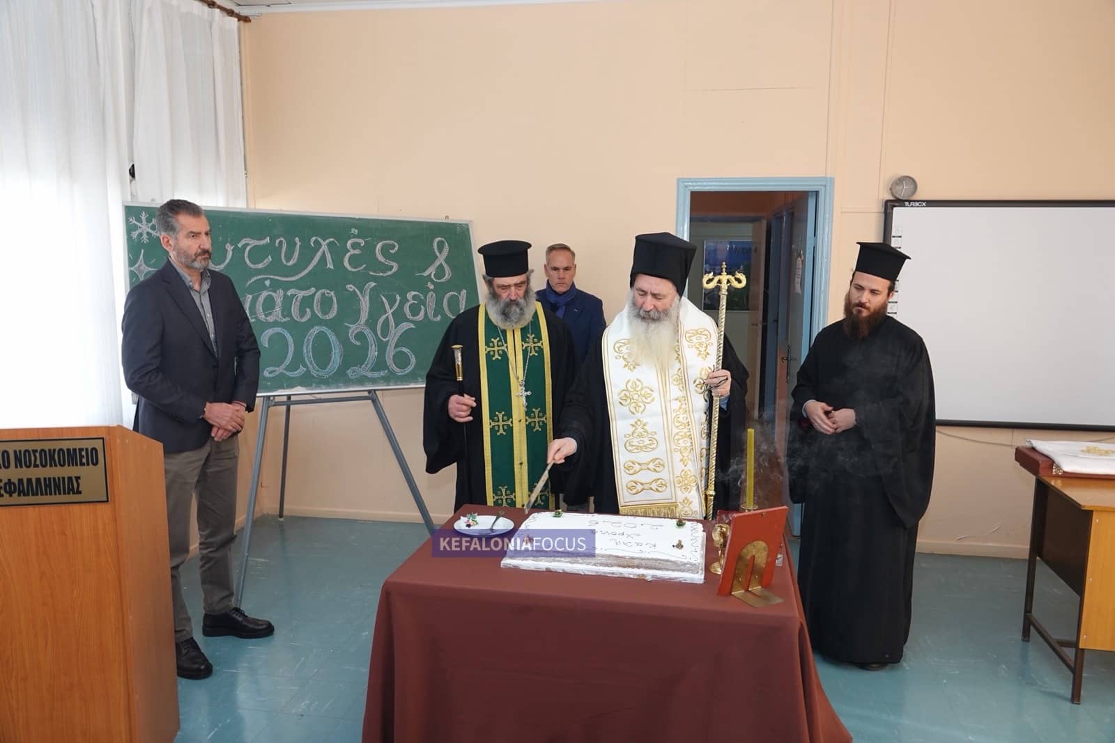 Την πίτα ευλόγησε ο Σεβασμιώτατος Μητροπολίτης Κεφαλληνίας κ. Δημήτριος, ο οποίος με πατρικά και εμψυχωτικά λόγια ευχήθηκε δύναμη ψυχής και αντοχή στο προσωπικό του νοσοκομείου, αναγνωρίζοντας το δύσκολο έργο που επιτελούν καθημερινά.