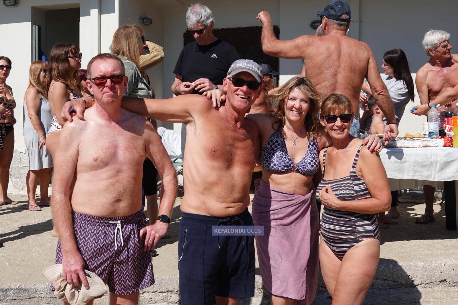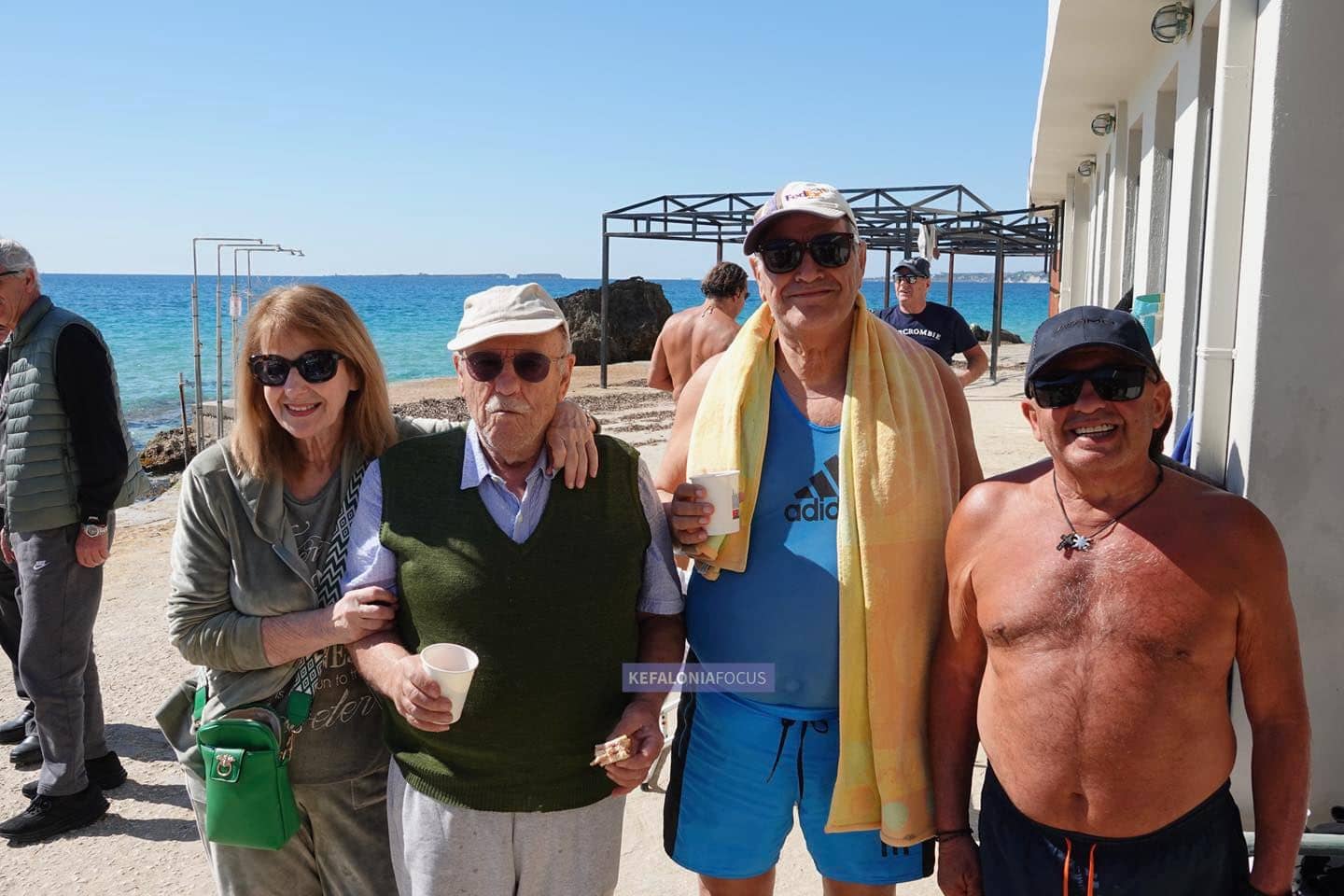 Ανάμεσα στους παρευρισκόμενους είδαμε παλιούς και αγαπημένους χειμερινούς κολυμβητές, ανθρώπους που έχουν γράψει τη δική τους ιστορία στον Πλατύ Γιαλό: τον Διονύση Παπαντωνάτο, λάτρη της παραλίας και χειμερινό κολυμβητή από το 1969, τον μοναδικό Νίκο Τζωρτζάτο, τον Βαγγέλη Μαζαράκη, την Έφη Πεταλούδη, τη Σουζάνα Πεφάνη, καθώς και πολλούς ακόμη Αργοστολιώτες και Βρετανούς μόνιμους κατοίκους της Κεφαλονιάς που συμμετέχουν ενεργά στην παρέα.