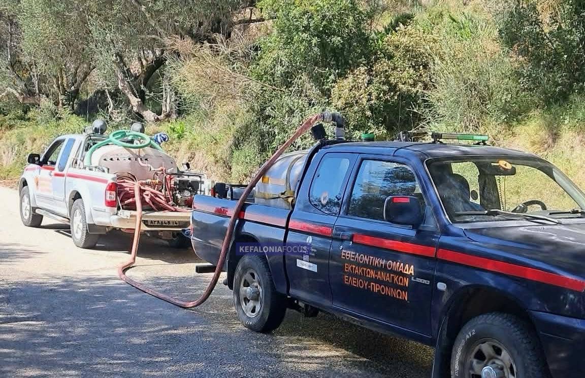 Για την κατάσβεση κινητοποιήθηκαν άμεσα δυνάμεις της Πυροσβεστικής Υπηρεσίας Κεφαλονιάς με πέντε οχήματα, ενώ στο σημείο έσπευσε και η Εθελοντική Ομάδα Εκτάκτων Αναγκών Ελειού‑Πρόννων με δύο οχήματα, συμβάλλοντας στην προσπάθεια περιορισμού της φωτιάς.