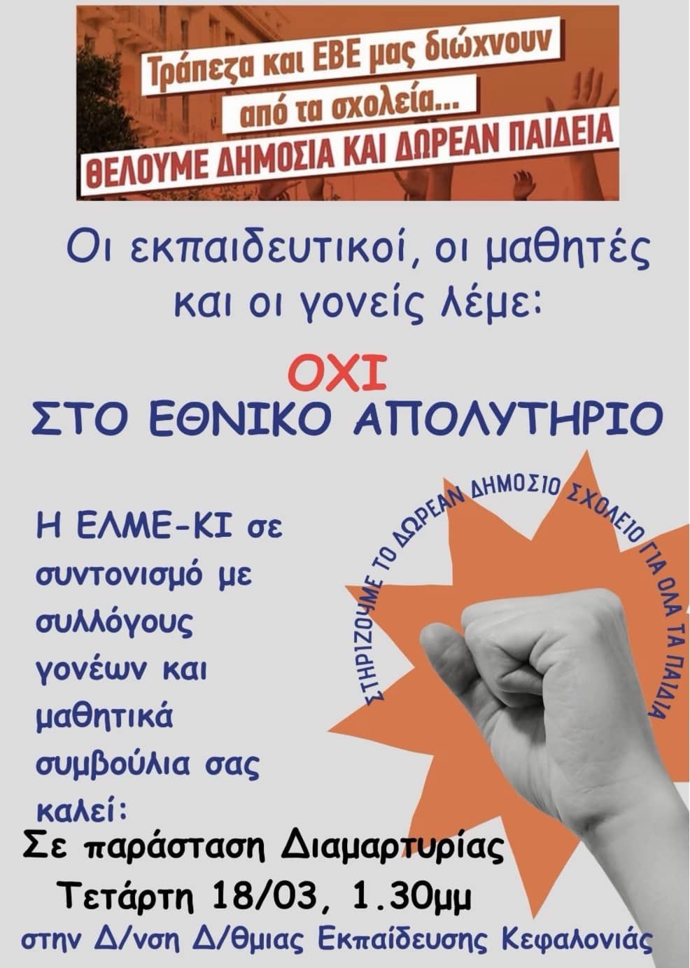 Κάλεσμα της ΕΛΜΕ-ΚΙ σε διαμαρτυρία για το εθνικό απολυτήριο στη Δ/νση Δ/θμιας Εκπαίδευσης ΚΟΙΝΩΝΙΑ Newsroom 15/03/2026 ΓΡΑΦΕΙ Ο ΜΑΚΗΣ ΛΕΚΑΤΣΑΣ 15/03/2026 15/03/2026 15/03/2026 Share FacebookXPinterestWhatsApp ΠΑΡΟΜΟΙΑ ΑΡΘΡΑ Previous articleΠρόγραμμα Ιεράς Πανήγυρις του Ευαγγελισμού στον Μητροπολιτικό Ναό ΑργοστολίουNext articleΠΑΣΟΚ Κεφαλονιάς : Στασιμότητα, παρελθοντικά βαρίδια και χωρίς διείσδυση στην κοινωνία ΣΧΟΛΙΑ ΧΡΗΣΤΩΝ ΤΕΛΕΥΤΑΙΑ ΝΕΑ ΠΑΣΟΚ Κεφαλονιάς : Στασιμότητα, παρελθοντικά βαρίδια και χωρίς διείσδυση στην κοινωνία 15/03/2026 Πρόγραμμα Ιεράς Πανήγυρις του Ευαγγελισμού στον Μητροπολιτικό Ναό Αργοστολίου 15/03/2026 «Ντόρις ARK – Animal Rescue Kefalonia» στο Βαλλιάνειο Γυμνάσιο Κεραμειών 15/03/2026 Στα Βήματα της Ομηρικής Ιθάκης: Μια Μοναδική Εξόρμηση 20 χιλιομέτρων στο... 15/03/2026 Μήνυμα του Πρωθυπουργού για τις Διεθνείς Εξελίξεις, την Οικονομία και τις... 15/03/2026