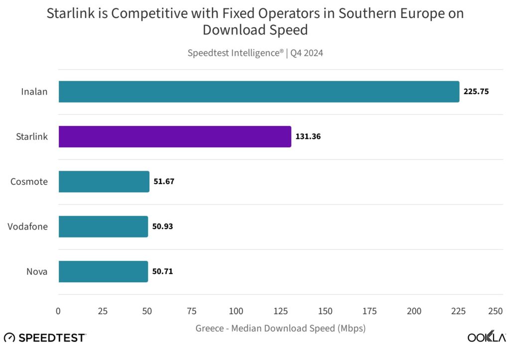 «Η υιοθέτηση Starlink», αναφέρει η Ookla, «είναι πιο συγκεντρωμένη σε χώρες με χαμηλότερα επίπεδα διείσδυσης ινών και μεγαλύτερο ποσοστό του πληθυσμού που ζει σε αγροτικές περιοχές. Χώρες της Κεντρικής και Νότιας Ευρώπης, όπως η Γερμανία, η Ελλάδα, η Ιταλία και η Κροατία, έχουν χαμηλότερη κάλυψη FTTH σε σύγκριση με τον μέσο όρο της ΕΕ και παρουσιάζουν υψηλότερα επίπεδα υιοθέτησης Starlink, πιθανόν λόγω του ότι η λύση LEO είναι σχετικά πιο ανταγωνιστική (είτε σε απόδοση, είτε σε τιμή) σε αυτές τις περιοχές».