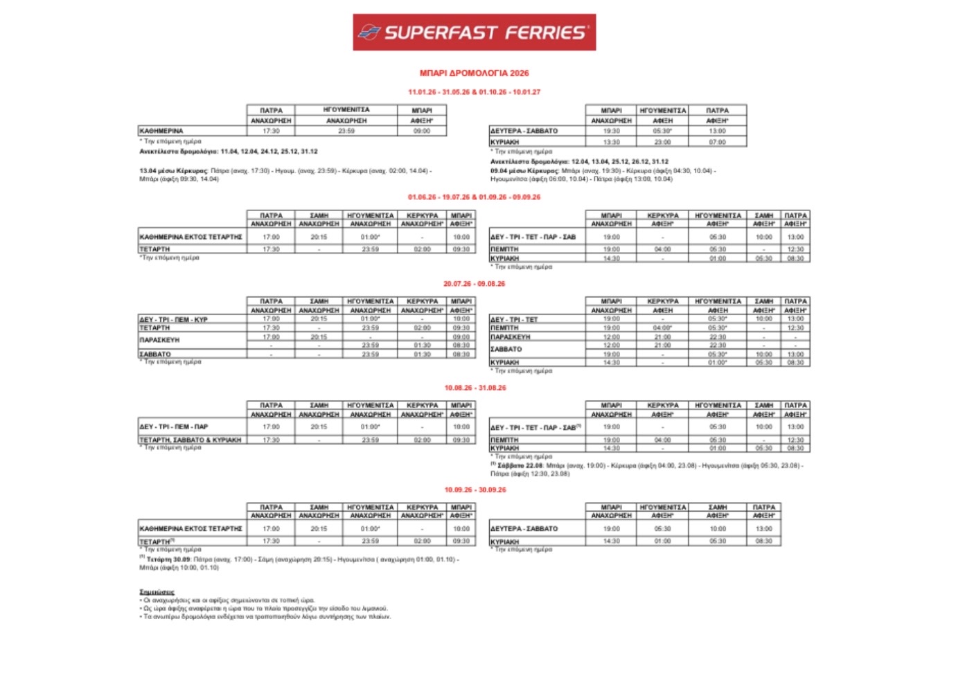 Παρακάτω τα ανανεωμένα δρομολόγια 2026
